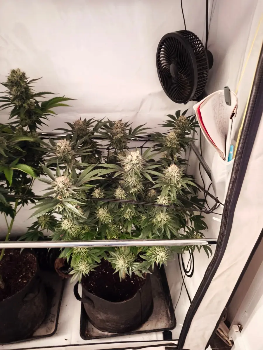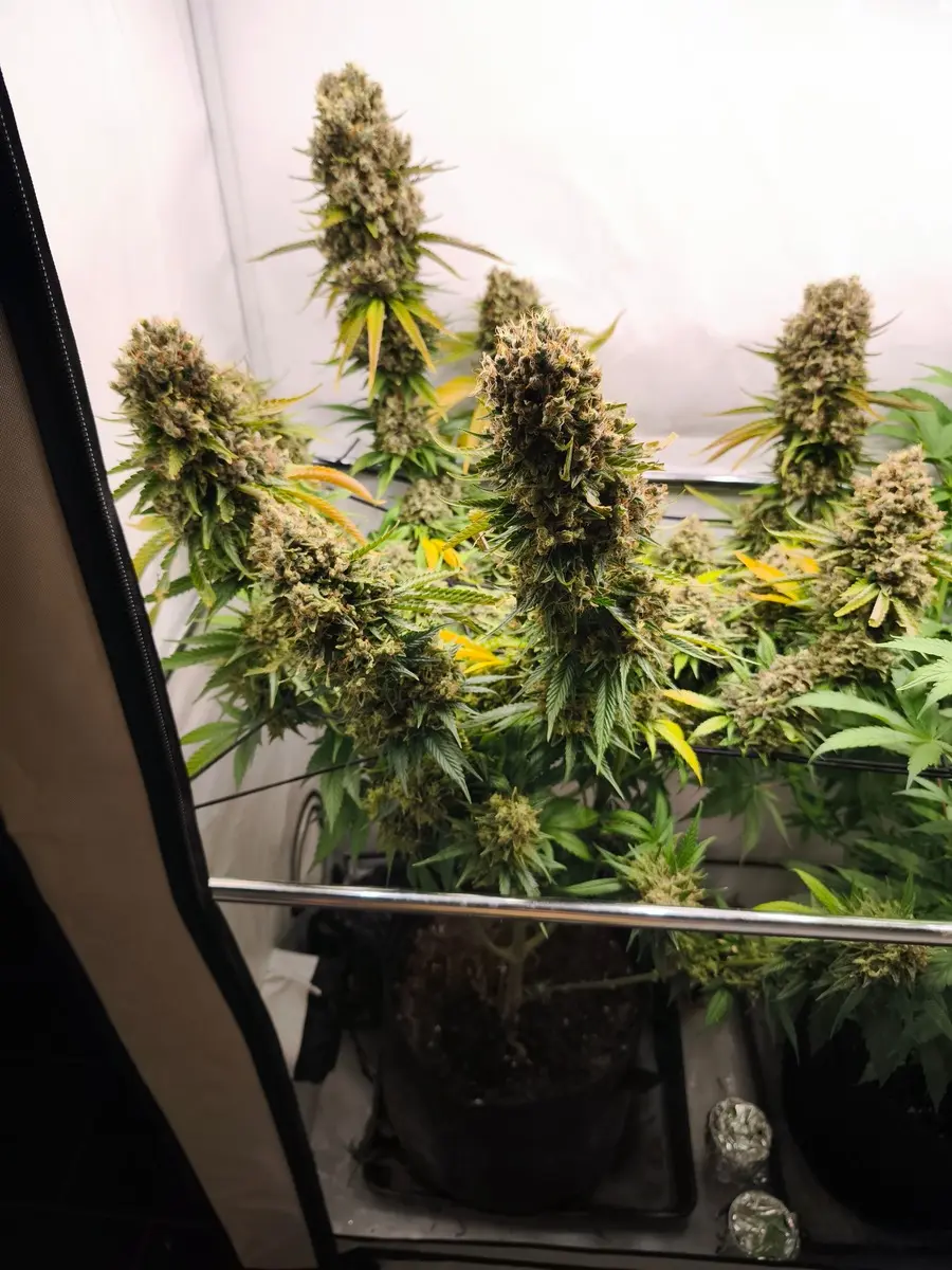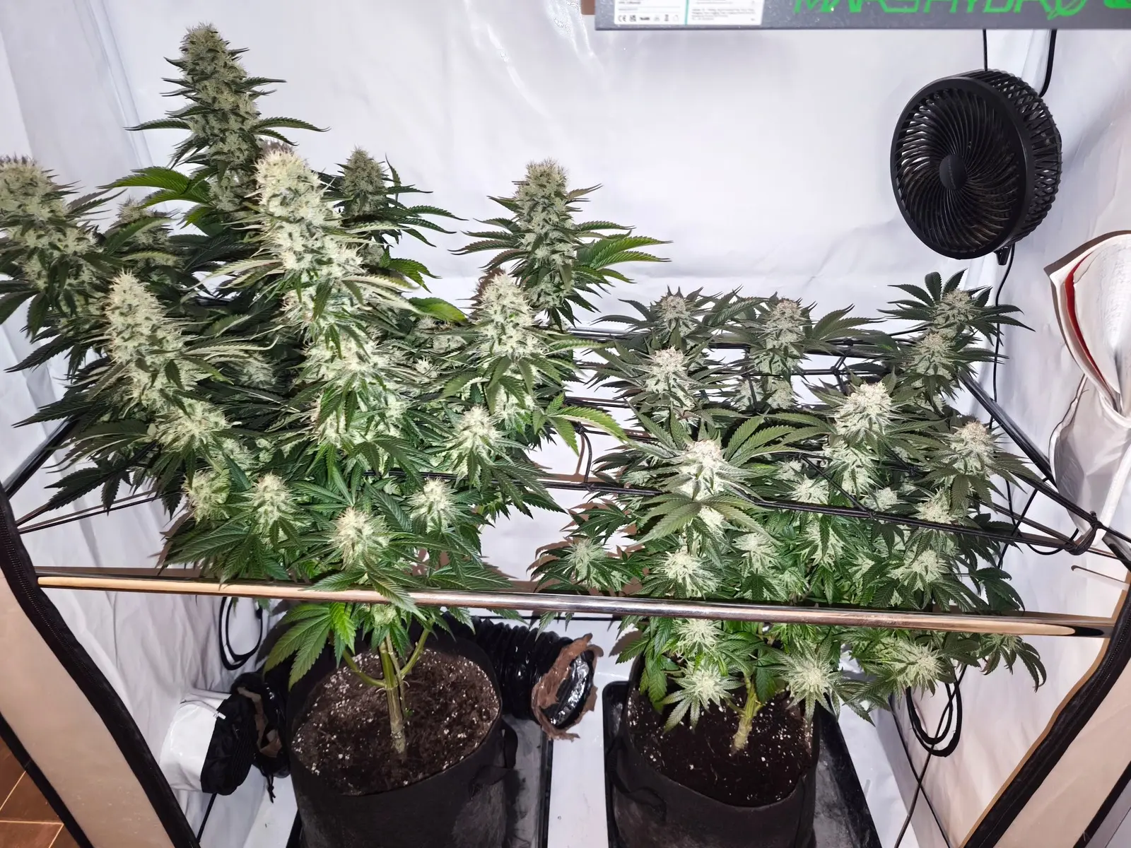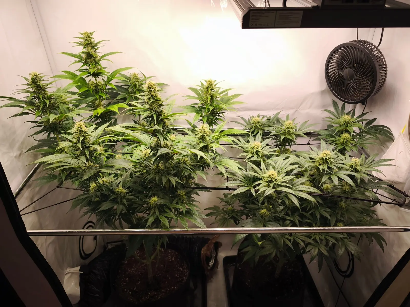 Mal nen kleines update.die Rechte Pflanze geht jetzt langsam in den Herbst die linke scheint aber noch ne Weile lĂ€nger zu brauchen.bin bis jetzt sehr zufrieden mit den strain.duft ist richtig geil zitronig und die Ausbeute dĂŒrfte auch ordentlich werden