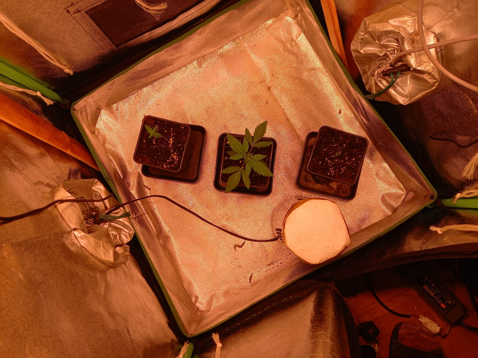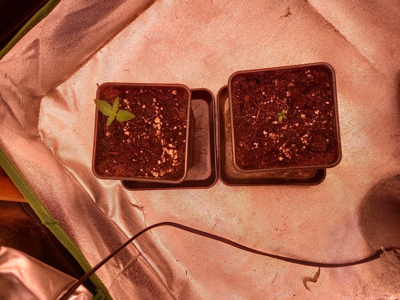 schätze morgen kommt kopf heraus - also montag - und am dienstag kommen beide babies in 1,6 L töpfchen und in 1 zelt - wo ich aus 1 meter höhe mit der 140w spider farmer draufballer ![]()