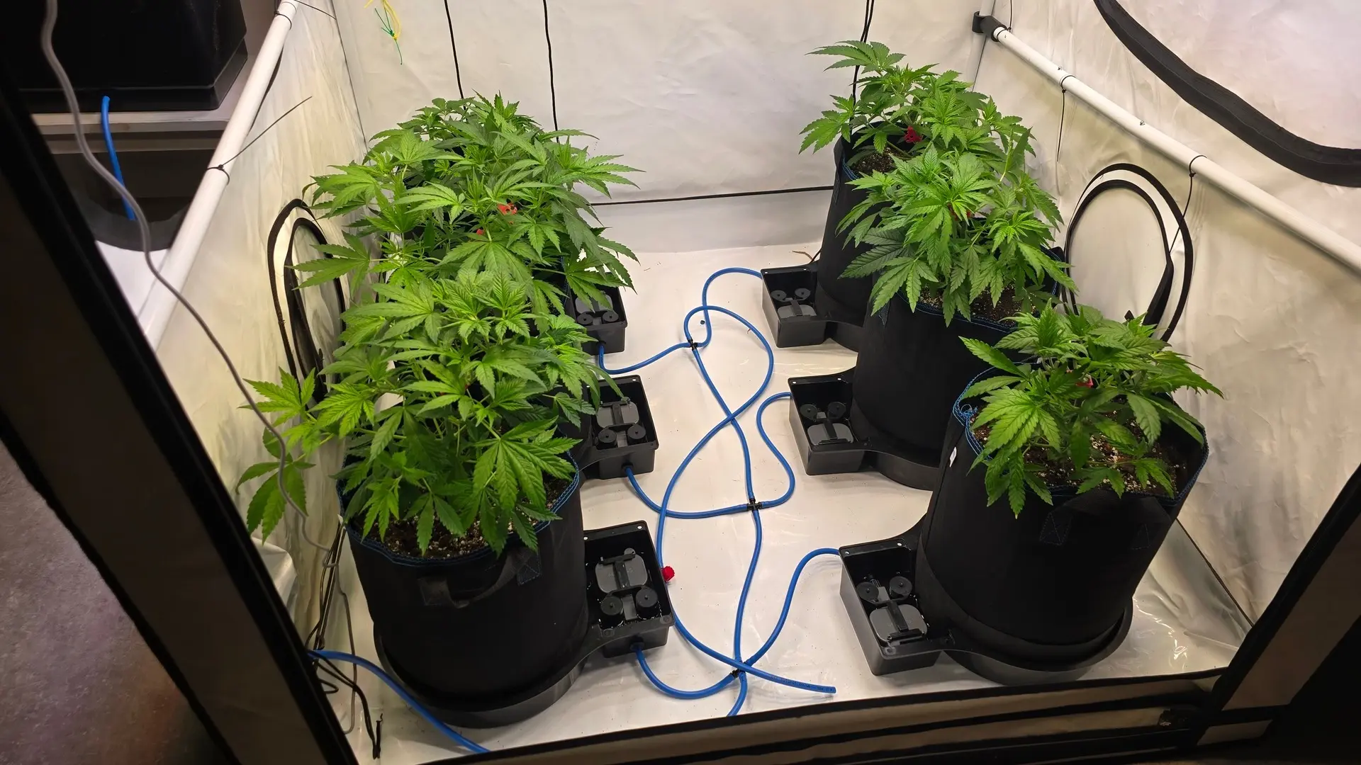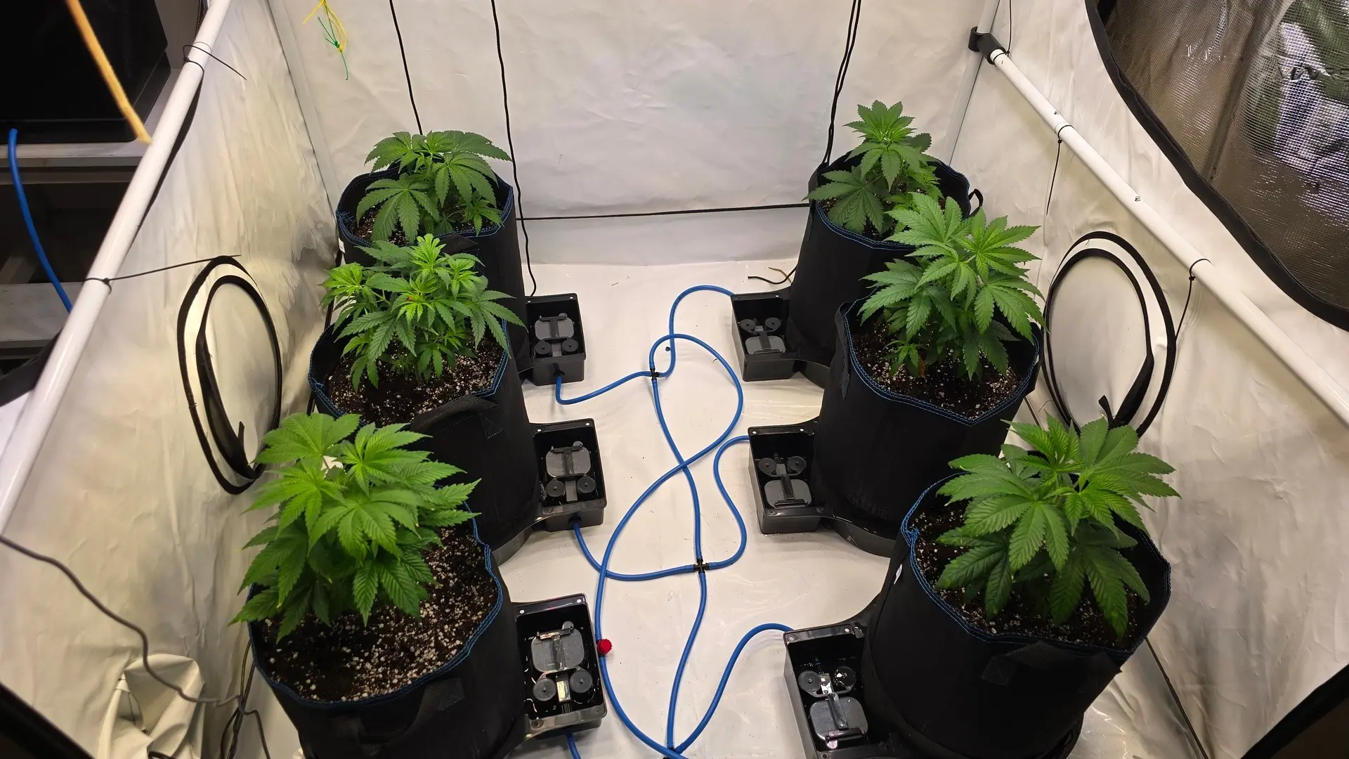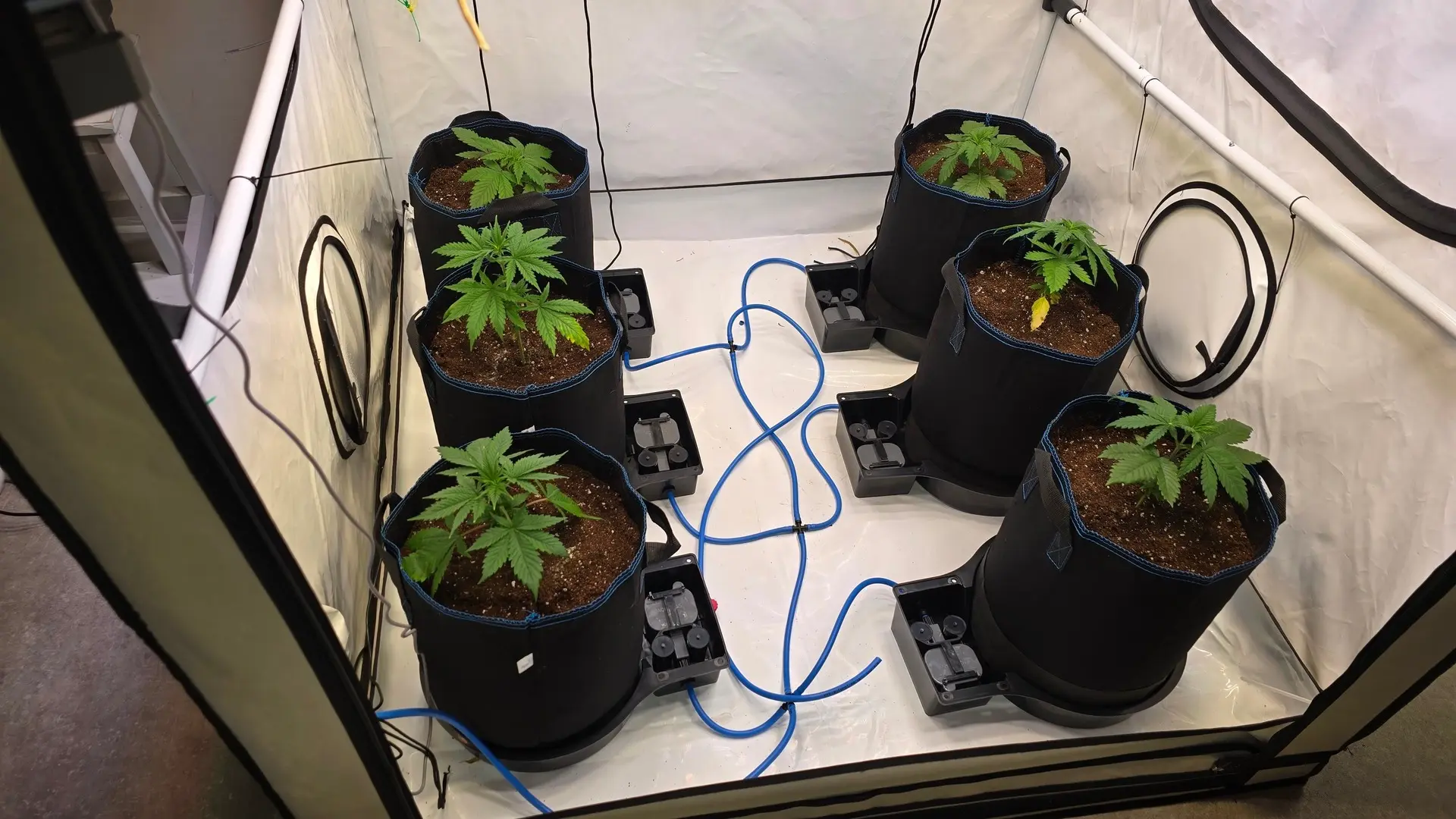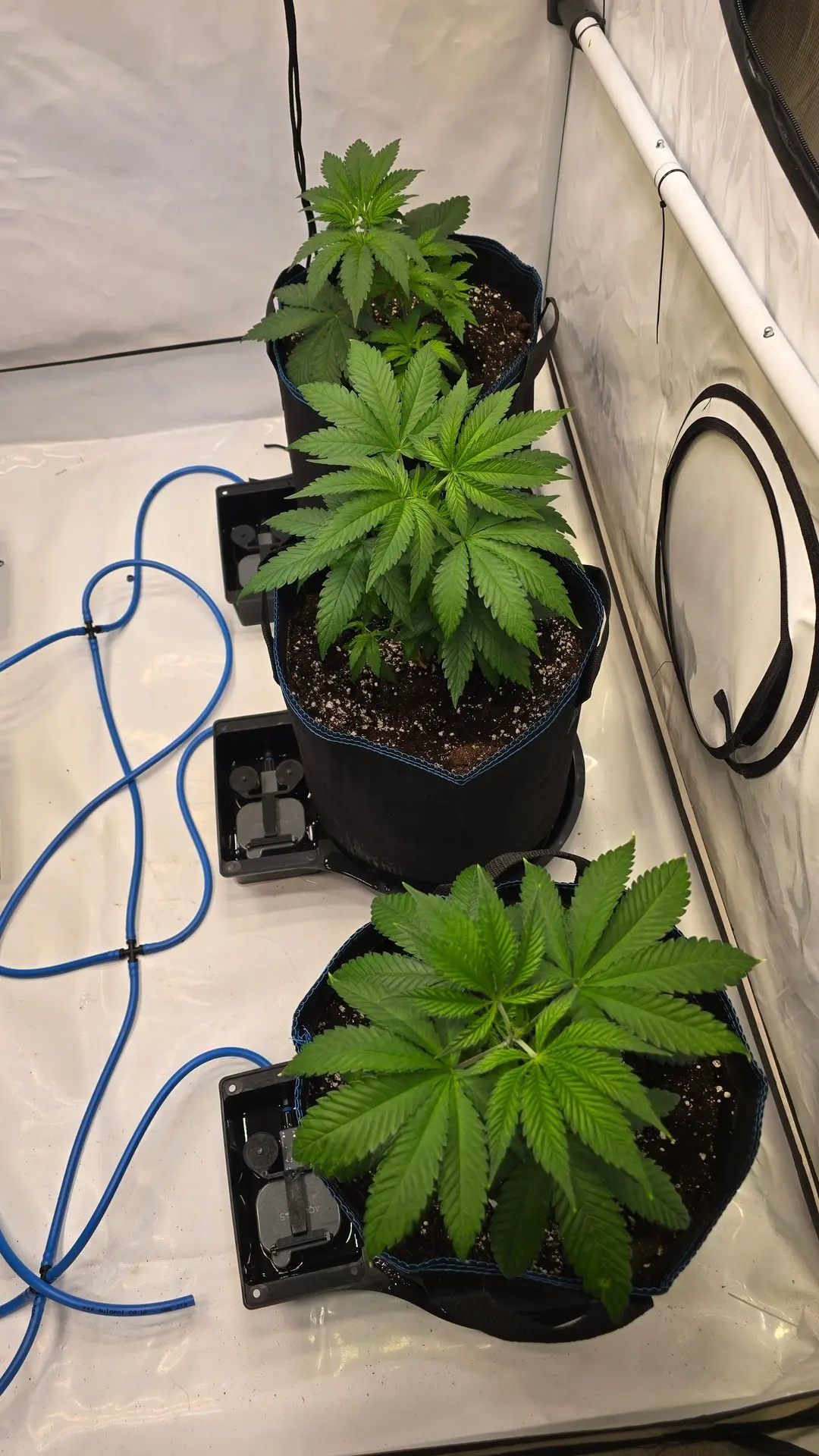 Heute wurde das neue Autopot System aufgebaut, die Pflänzchen umgetopft und zum Anwurzeln erstmal von oben gegossen.
