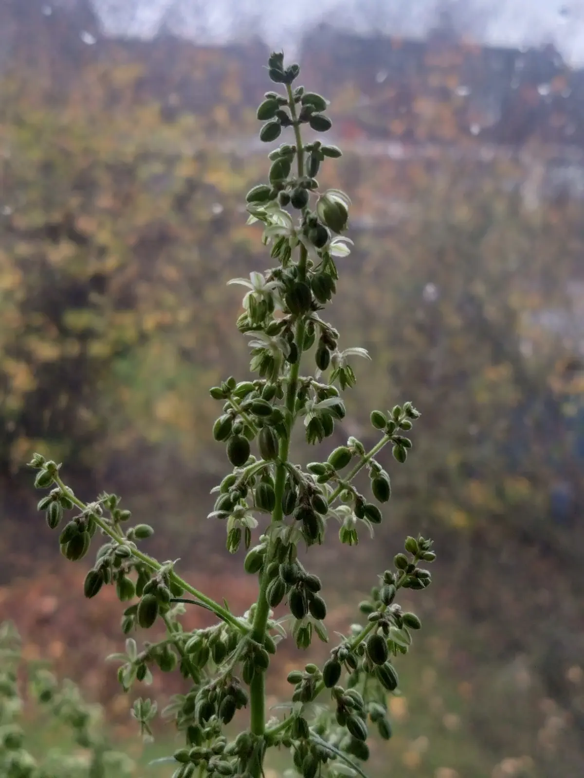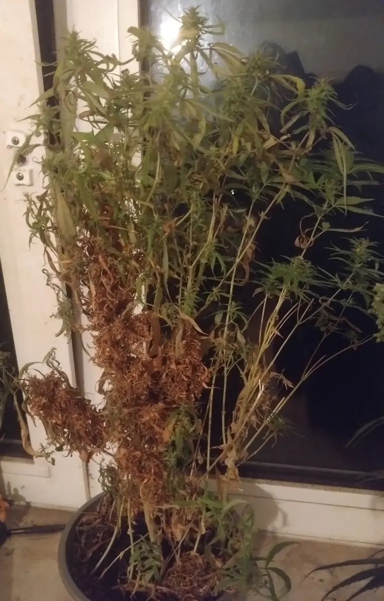Das Trockene als siluette war eine Pflanze aus dem Frühjahr dann ging sie zurück ins Vegetative und es schossen neu Triebe.