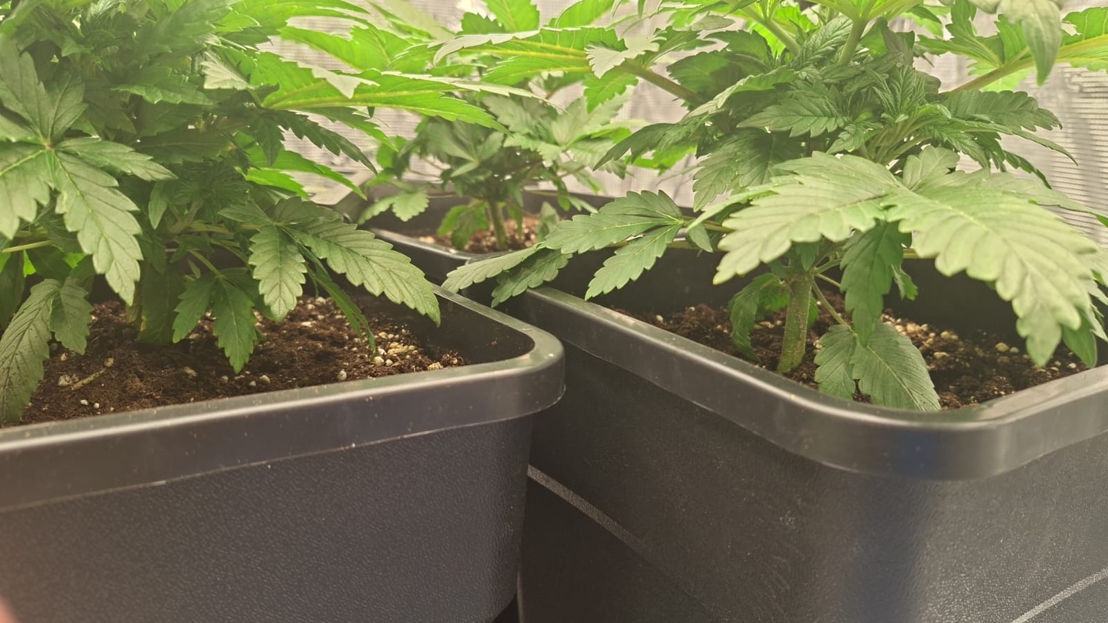 Ich habe gestern gegossen mal mit einem etwas höherem EC von 1,5 und einem PH von ca 6,5 ich weiß das war etwas zu viel. Aber wie ich sehe hat es den Pflanzen nicht all zu schlecht gefallen.