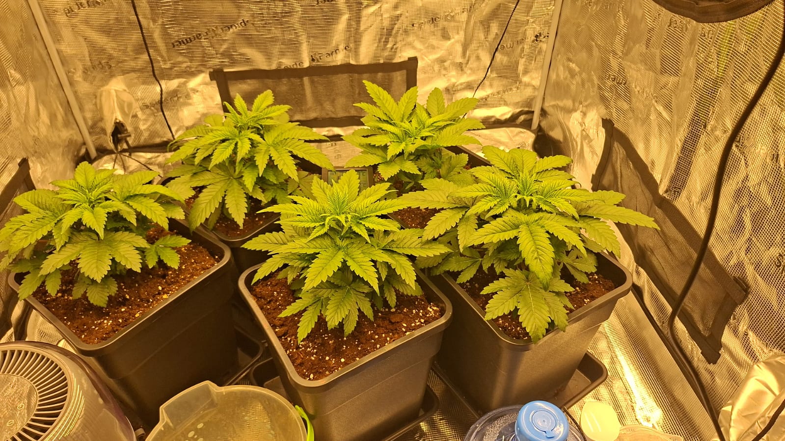 Der Großteil ist von Spider Farmer, 150er Lüfter Lampe ist eine G5000, Ph ca 6 und den EC leicht unter 1.
