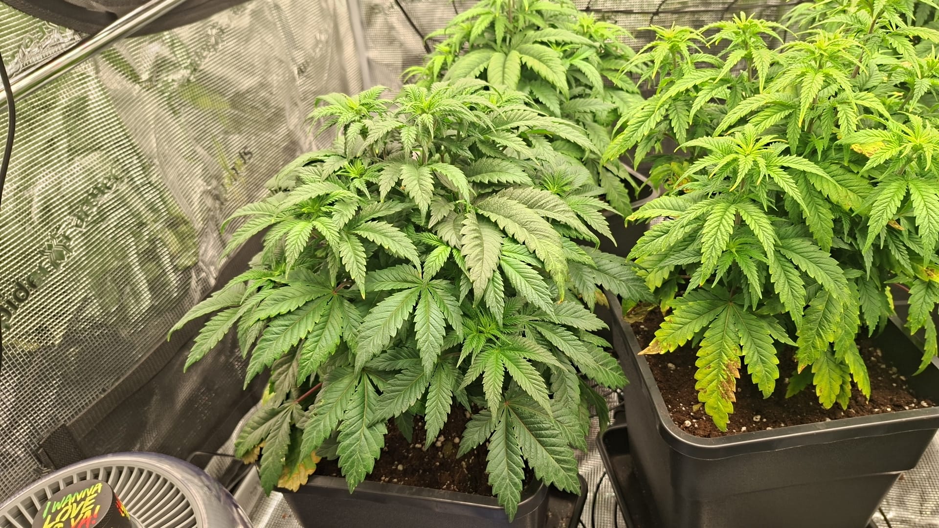 Echt jetzt? Du hast 11 Liter Pötte und da sollten bei langsamen und vernünfigen gießen 2,5l rein gehen. Und du machst weiter mit deinem klein klein? Versuchs doch einfach Mal, viel schlimmer als jetzt kann es kaum werden. Mit dem Dünger wär ich bis auf N vorsichtig, Salze hast du m.M. nach genug in dem Substrat. Lass die Pflanzen sich doch erst mal erholen.