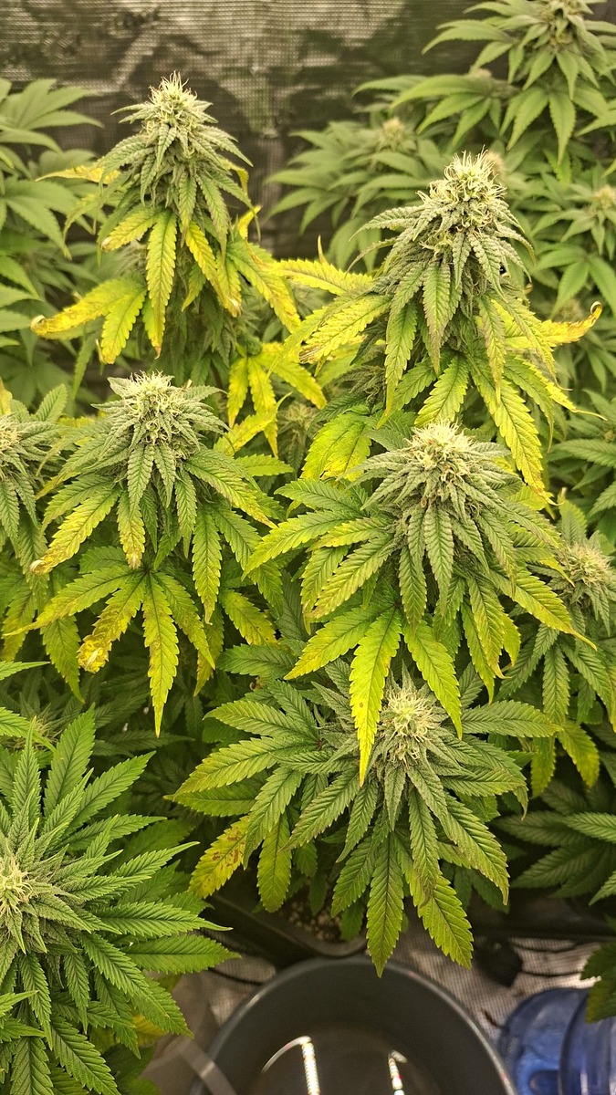 Und ich werfe mal noch bambusstaebe in den raum, damit koenntest du die oberen blueten etwas verteilen und so fuer eine bessere lichtausbeute sorgen.Danach kannste schauen was wirklich an Blaettern weg kann. -