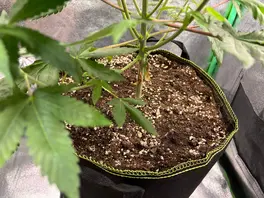 👨‍🌾 Gestern wurde die gute getoppt. Dolomit Kalk ausgebracht, mit leich reg. Wasser gegossen. Ich werde sie bald umtopfen müssen, aber die Poison braucht noch Zeit...