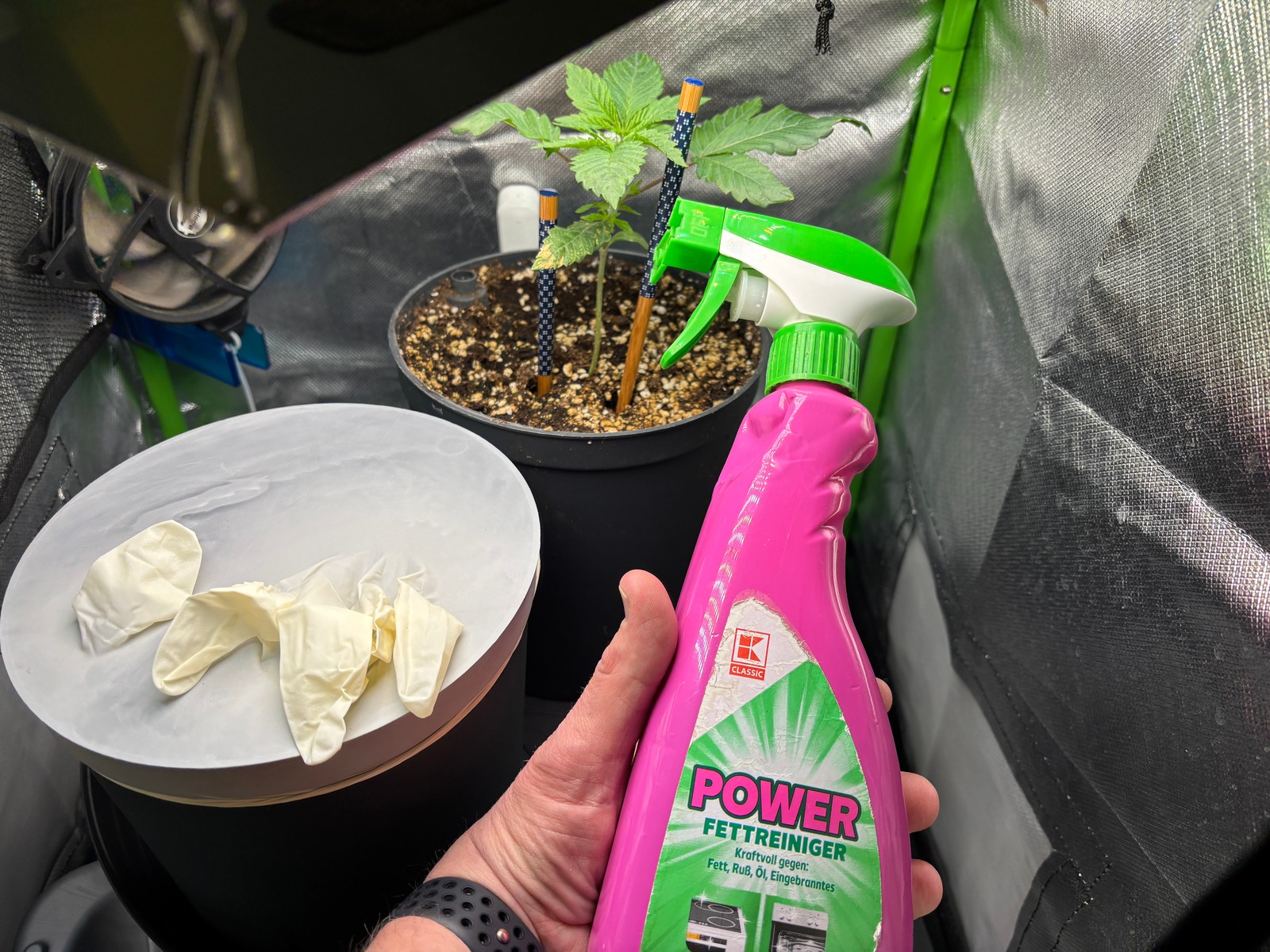 👨‍🌾🧑‍🔬 Ich werd nachher etwas 🪨 Dolomit Kalk auf der Erde ausbringen und dann bekommt Sie beim nächsten 1x Gießen mit 🧪 Veg Dünger. Also sie hat ja noch ein paar Tage, ausserdem bleibt mir auch nichts anderes übrig, sobald die Green Poison fertig ist gehts rüber, am besten noch davor umtopfen. Ansonsten weiss ich erstmal nichts zu berichten.. 🤔