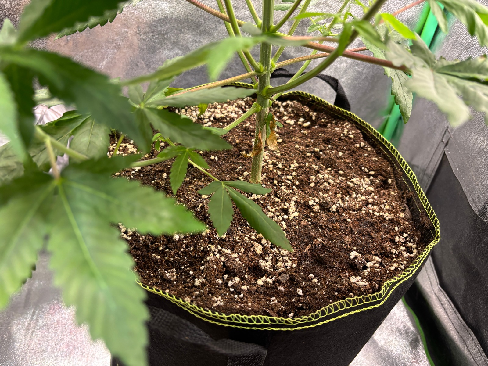 👨‍🌾🧑‍🔬Gestern wurde umgetopft: 14 Liter Stofftopf mit dem Growmix, Dolomit Kalk & Mykhorriza und mit 6 Litern PH-Reguliertem 🫗 Wasser auf ca. 🌡️ PH 6.5 - Nach der Black Jack weiss ich schon mal obs mit der Erde in Zukunft weitergeht, der Sack war nun leer. Also sollte es jetzt keine großen Probleme geben mach ich keine Experimente mehr und bleibe mal bei einer Erde 😊