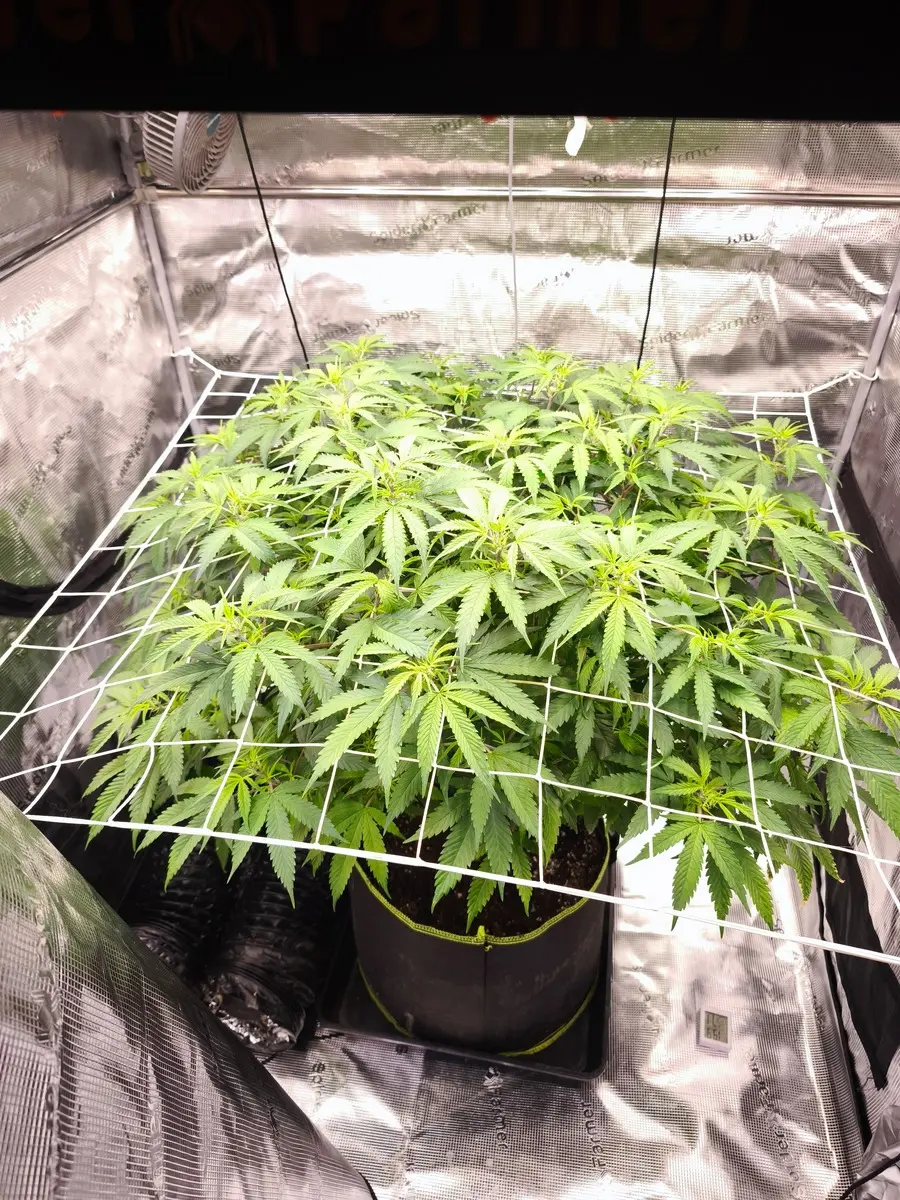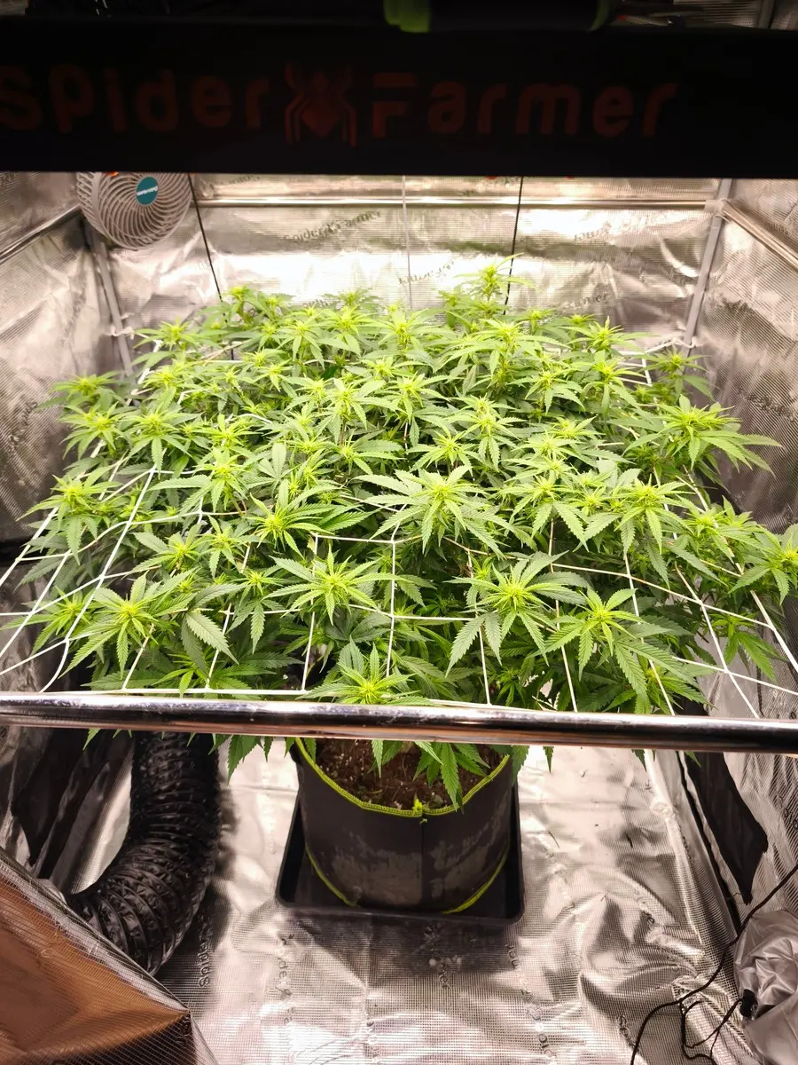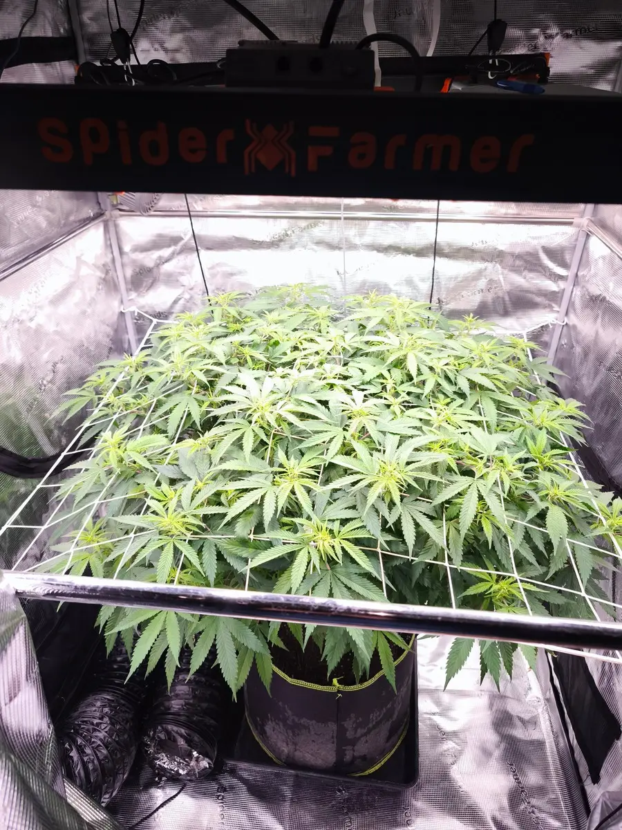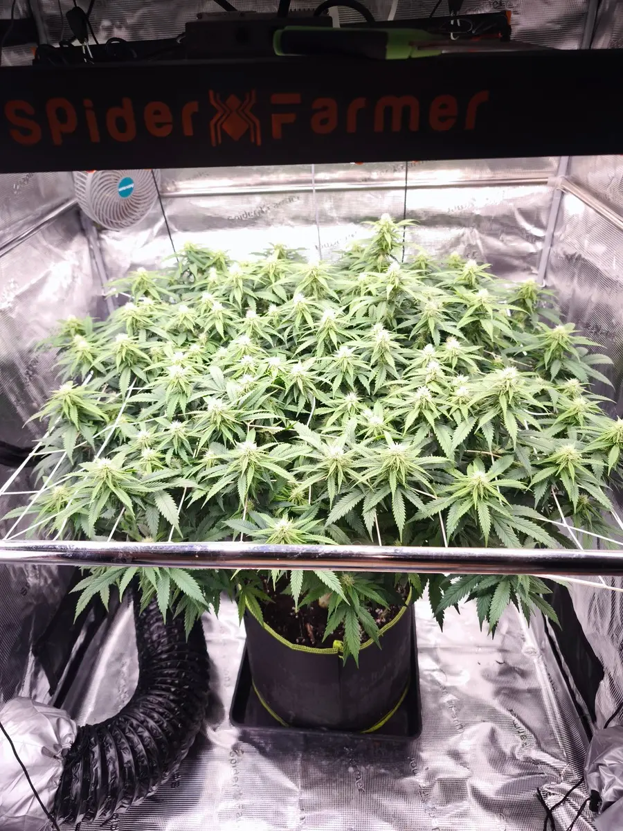 Diesmal geht ne monstermaker an den start.die bekommt jetzt noch nen paar Tage vegi und dann geht's endlich in die blütephase.die Dame steht unter Ner spider Farmer se5000 auf 120x120.gedüngt wird mit Greenhouse feeding mineralisch.