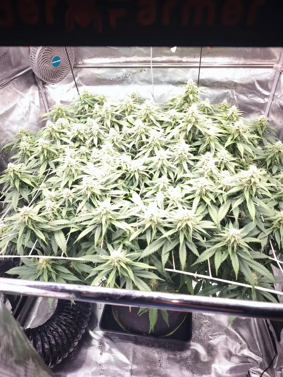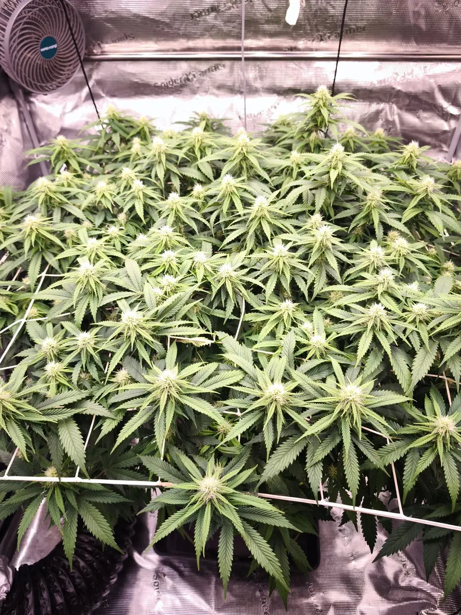 Gestern wurde mal ordentlich entlaubt und das Licht aufgedreht.die ist jetzt sehr schnell in blüte gegangen.da kamen schon nach Ner Woche auf 12/12 die ersten Blüten ansätze
