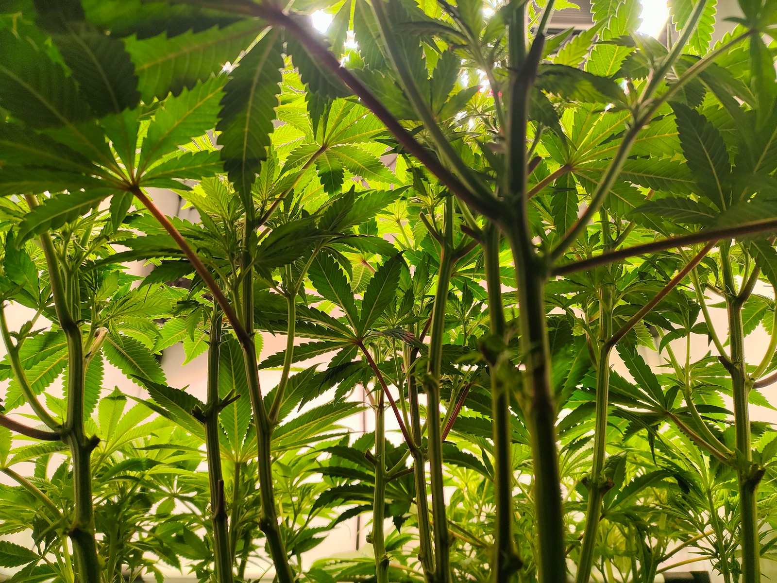 Die Pflanzen gehen nun aber ganz schön in die Breite. Ein 80er Zelt ist für 3 Pflanzen definitiv klein!