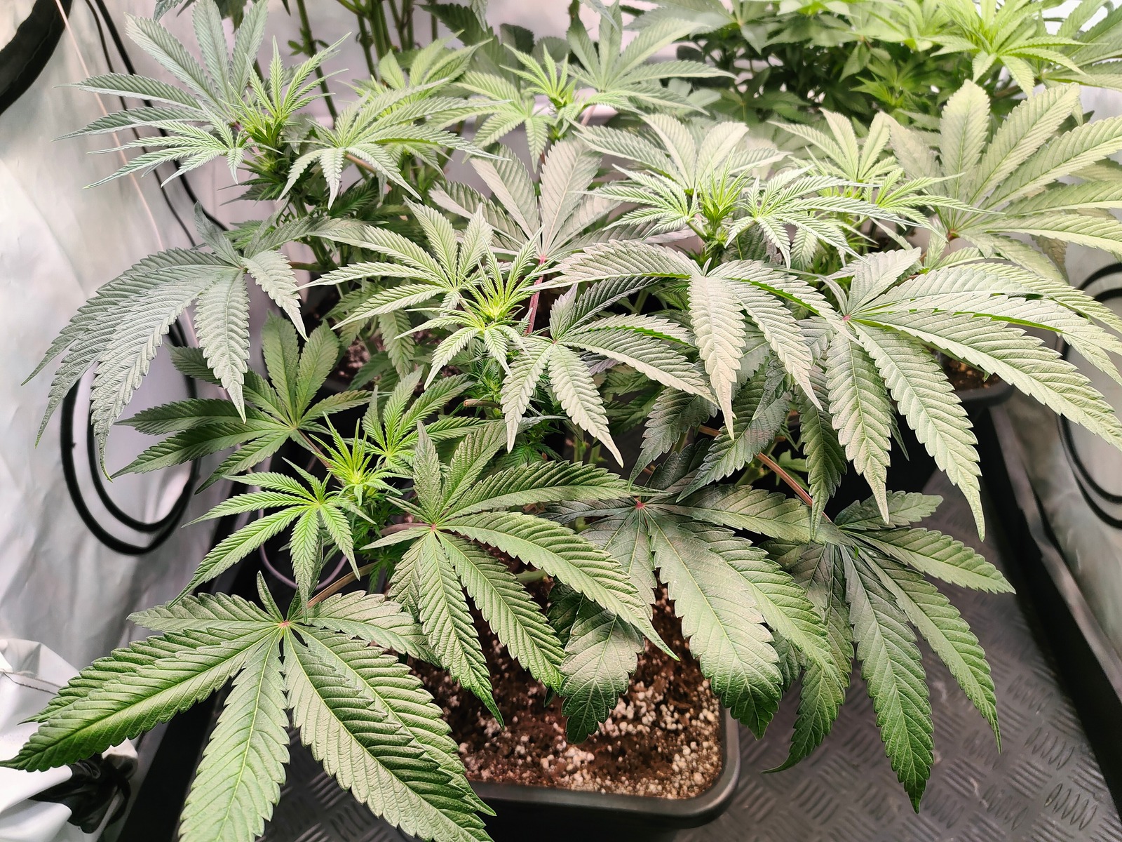Die Pflanzen gehen nun aber ganz schön in die Breite. Ein 80er Zelt ist für 3 Pflanzen definitiv klein! ^^