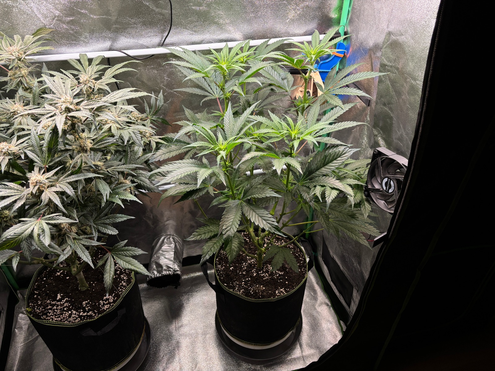 das täuscht etwas durch´s in der Ecke stehen, habe sie ja 2x fach beschnitten, 1x großen kopfsteck und runtergebunden, prinzipell haste aber recht, sieht wohl so aus als hätte sie dann 50 vegi tage, gibt bestimmt ein weiteres kleines monster *g ich freu mich drauf. auch so das es mal läuft, jetzt mach ich maximal nur noch kleine Änderungen an meinem System, bin aber auch etwas arg faul, geb ich zu.