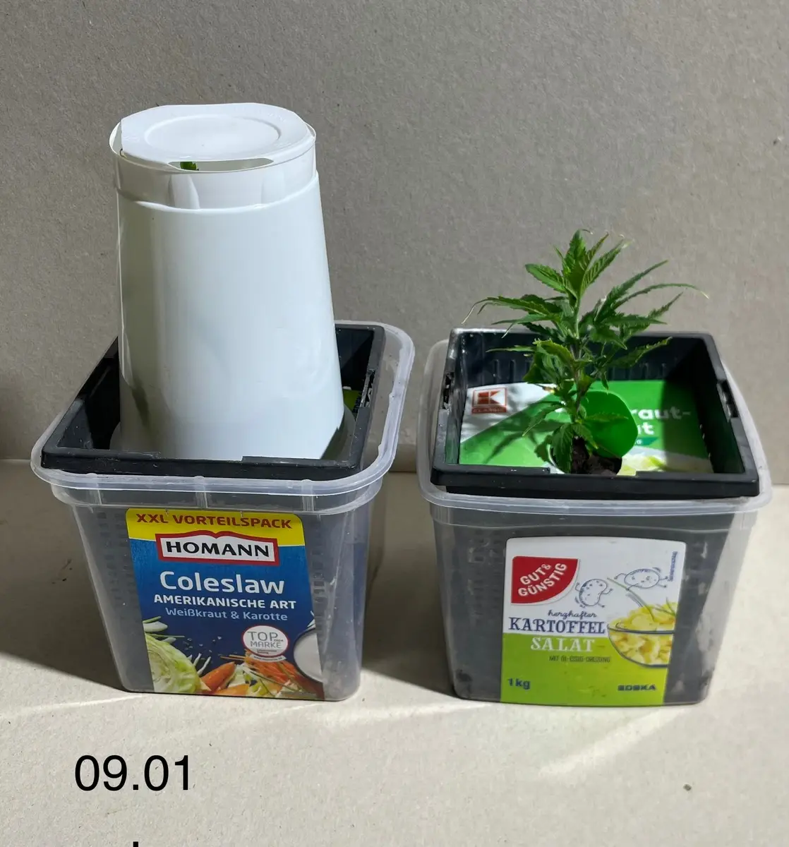 Ich bekomm deswegen übrigens sogar weniger Pflanzen rein, weil ich Jogurtbecher zwischen die runden Puddingeimer stopfen konnte. Deswegen hab ich mir mit dem Schritt auch so viel Zeit gelassen🤗