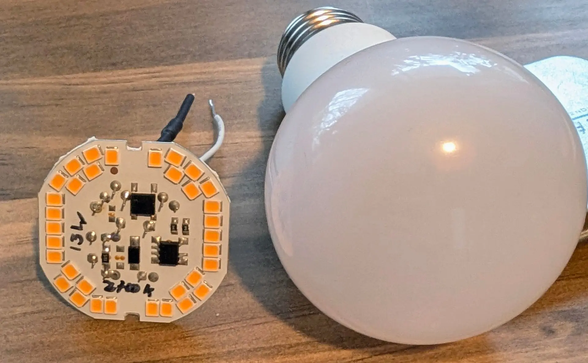 Das DIY E27 Panel wird mit komplett gestrippten LED-Platinen aus den Phillips CoePro's bestückt, das spart in der Höhe extrem viel Platz.