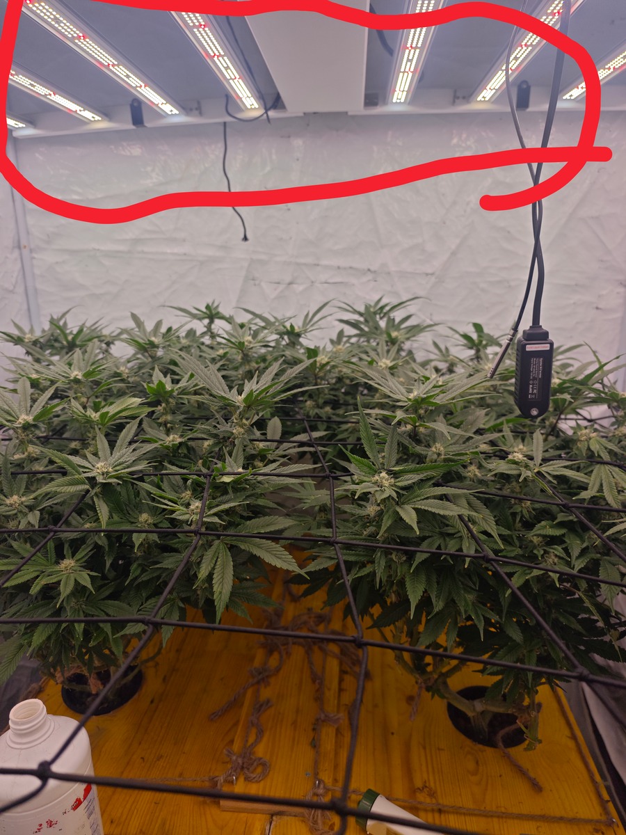 Unter einer Grow Medic Led Lampe, regelbar in 25 er Schritten bis maximal 760 Watt. Desweiteren 2 neue Umluft venti von Spiderfarmer. Spiderfarmer Befeuchter mit Sensor. Ebenso ein Umluftventi für unterm Blätterdach. Abluft kam ebenso neu, Prima Klima 800 , 150mm , mit Temperaturregler. Hab jetzt mal ein wenig Geld in die Hand genommen , muss ja sein. Eigentlich sollten die Mädels in einer 80*80 * 160 stehen , wurde aber viel zu eng .