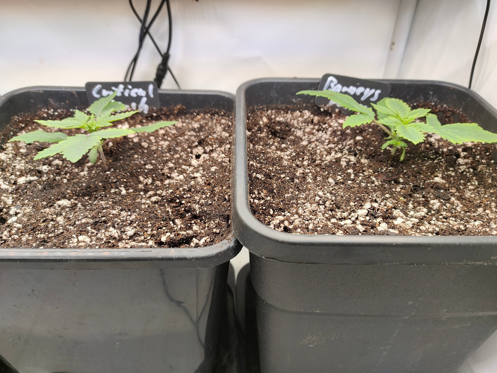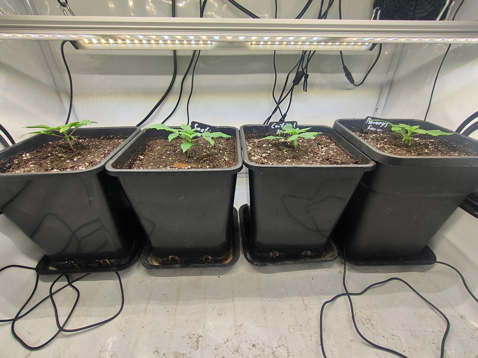 So, auf Wunsch einzelner Herren habe ich dann mal umgetopft. Stehen nun in 9 Liter Töpfen unter zwei SanLight II Flex 15 und zwei Flex 10.