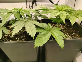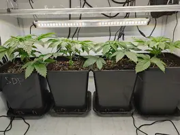 So, auf Wunsch einzelner Herren habe ich dann mal umgetopft. Stehen nun in 9 Liter Töpfen unter zwei SanLight II Flex 15 und zwei Flex 10.