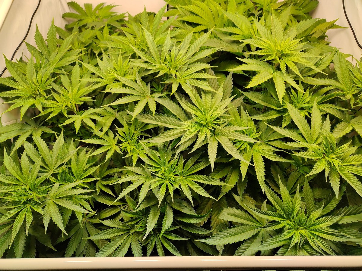 Scheinen sich ganz wohl zu fühlen. Heute noch einmal etwas beschnitten und getoppt. Anfang nächster Woche schicke ich sie dann in die Blüte.