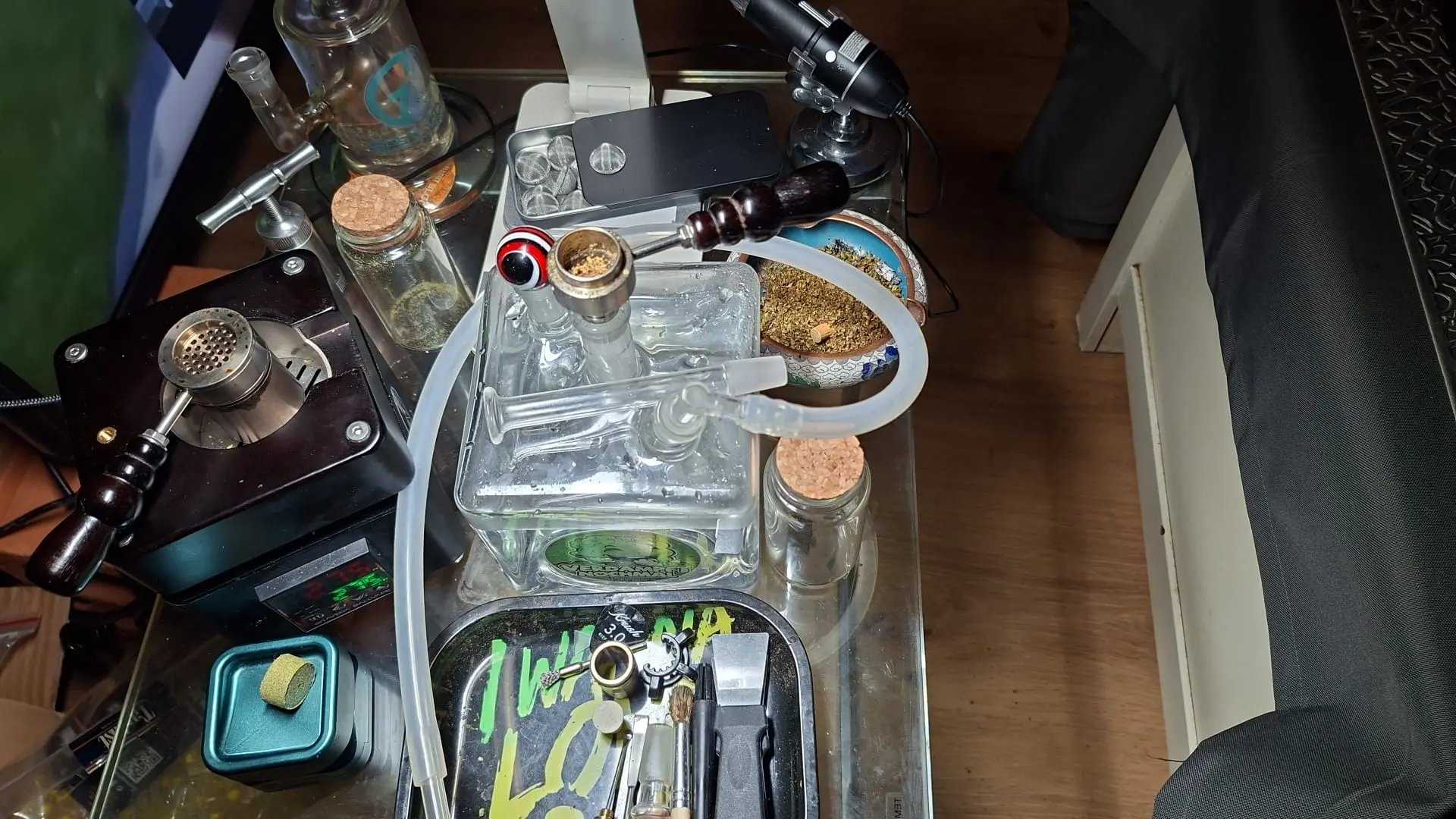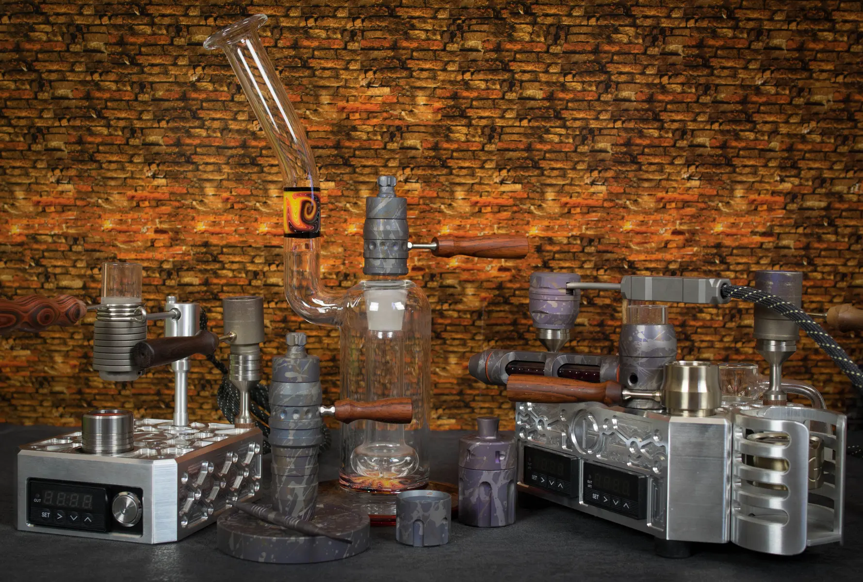 Ich hatte schon ein paar stationäre Lösungen. Angefangen beim Herborizer, Arizer und Co. Mit Cannabis-Hardware ist dann mein erster Ball-Vape eingezogen. Es war am Anfang nur ein PID mit Aufnahme und 20mm Kopf, dann kam die Moab von CH, die hatte schon eine 25er Spule. Meine Moab ist aber jetzt in den Ruhestand gegangen und neues Spielzeug ist eingezogen. Das Gehäuse für die PID und die Bliss von Cannabis Hardware. Jetzt hat alles seinen Platz.