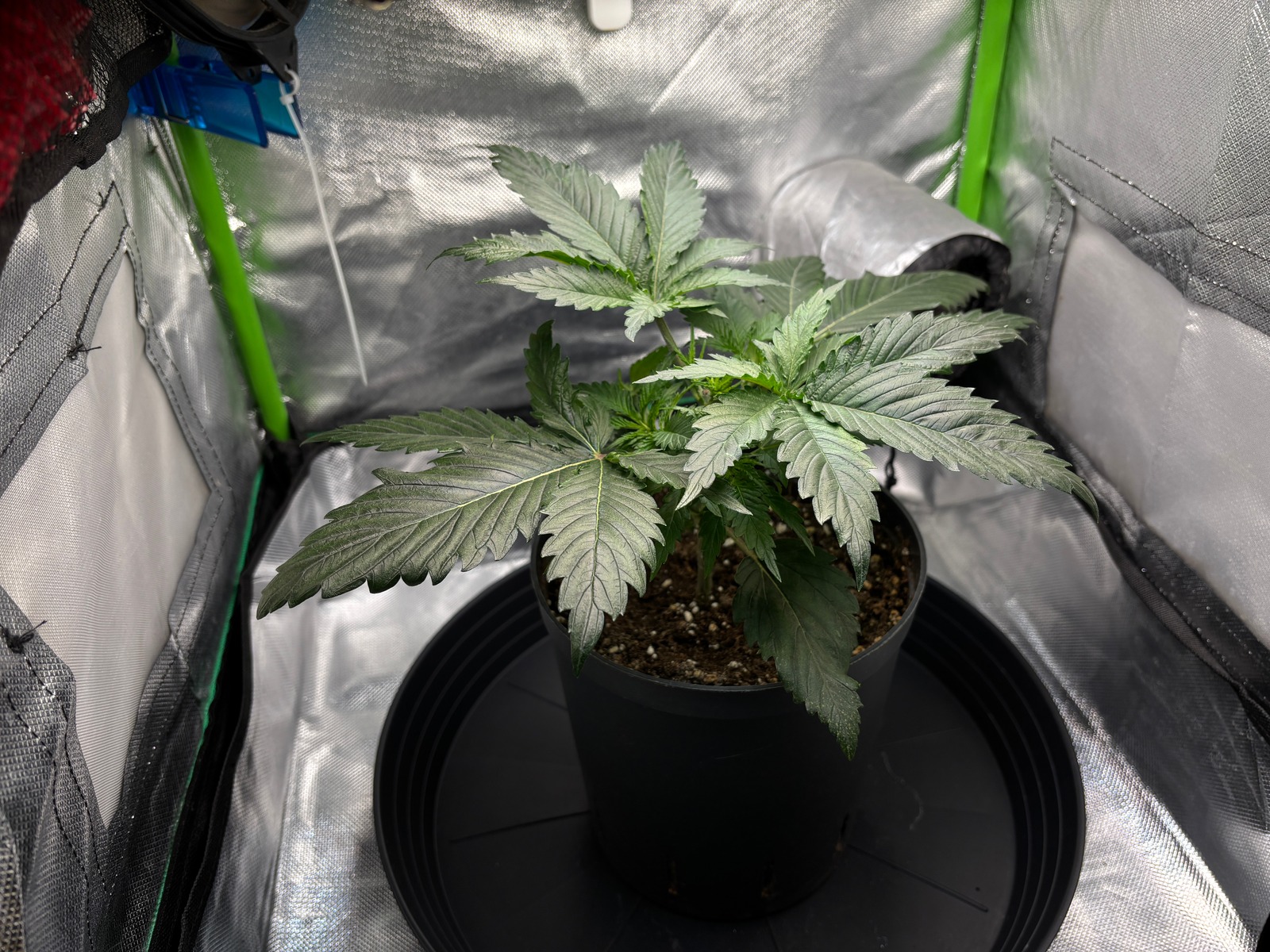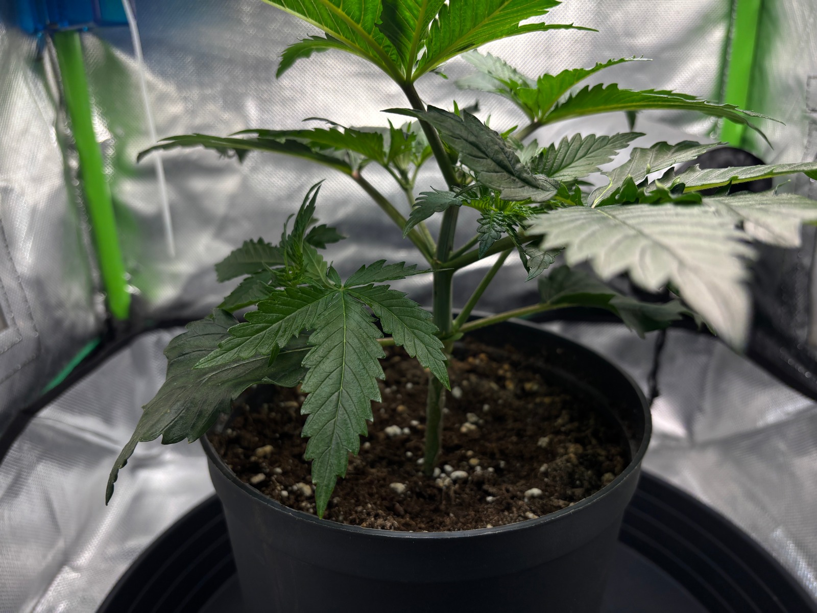 Mit den Vegi Zeiträumen, der Erde und den 14 Liter Topfvolumen bin ich bislang super zufrieden, könnte sein das es mein finales Setup ist. Ich möchte ab einem bestimmten Zeitpunkt die Begebenheiten nicht mehr verändern, so dass ich mich zu 100% auf die Pflanze konzentrieren kann. In Zukunft möchte ich mir auch mit den Fotos etwas mehr mühe geben und deshalb werde ich demnächst eine Fotopape besorgen, so können die Breeder auch mal ein gutes Pic für Ihre Zwecke verwenden.
