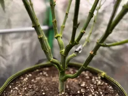 Der Trieb rechts, den ich geflickt hatte, ist wirklich nur marginal mit der Pflanze verbunden. Am besten mache ich da noch ein Foto, ums mal zu veranschaulichen. (sobald das Licht angeht) - Ich dachte schon daran Ihn einfach gleich abzutrennen, somit anderen Trieben in der Richtung eine Wuchschance zu geben...