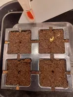 dafür ist noch ein kurzschwanzkeimling eingezogen, also 2 kerne in den 2 linken löchern. sollten die noch fehlenden samen noch kommen, b ekommen sie natürlihc ne chance