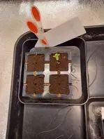 dafür ist noch ein kurzschwanzkeimling eingezogen, also 2 kerne in den 2 linken löchern. sollten die noch fehlenden samen noch kommen, b ekommen sie natürlihc ne chance :)