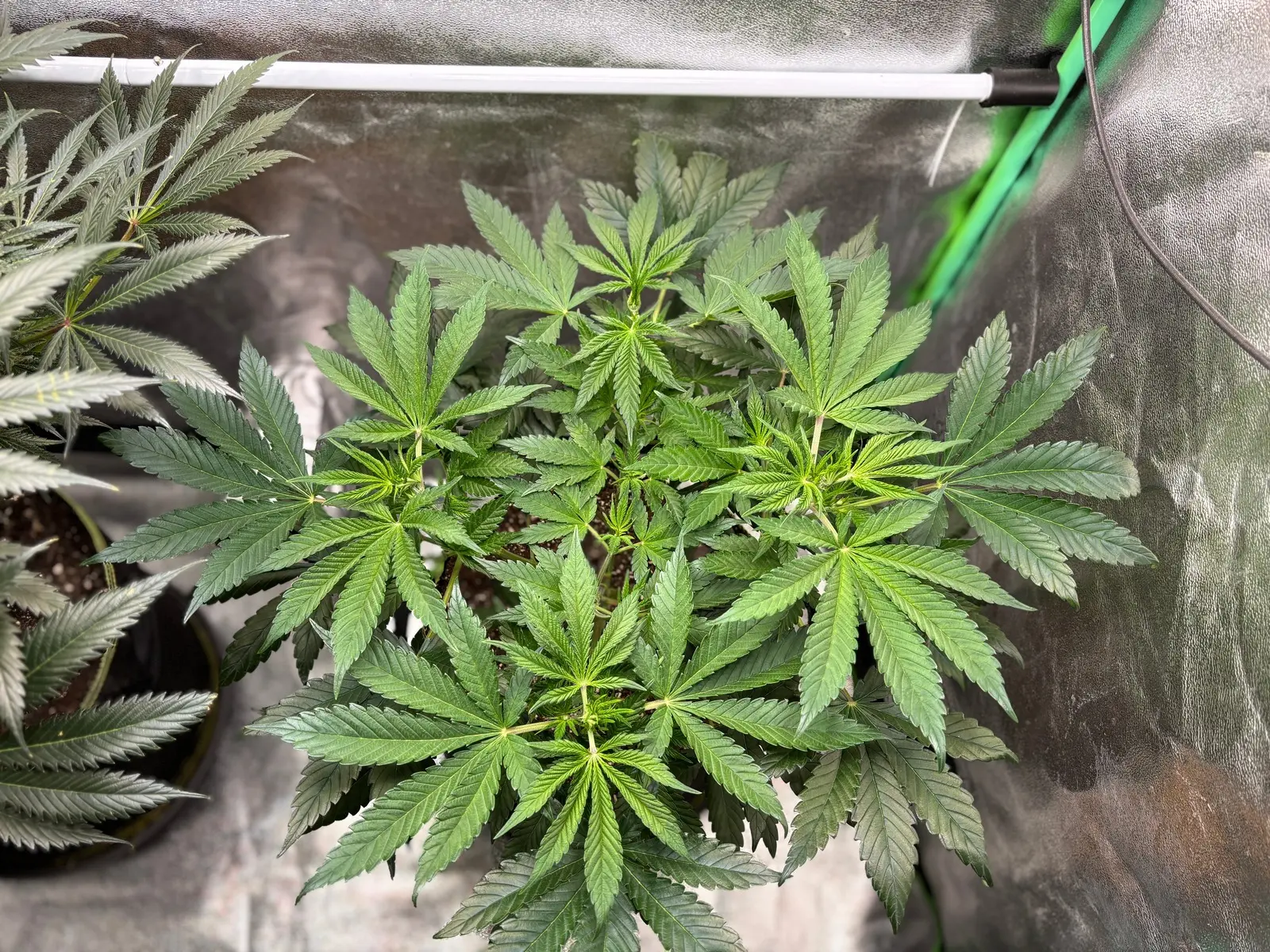 Ich glaube meine dürfte deiner 2.ten Pflanze ähnliche sein, mache nachher gleich den Report - Bei der Kush ist mir ein schönes Blätterdach gelungen. Ich gehe so von ner Woche-10 Tage weiterer Vegi aus, schaun wa mal was die Amnesia Trichome sagen...
