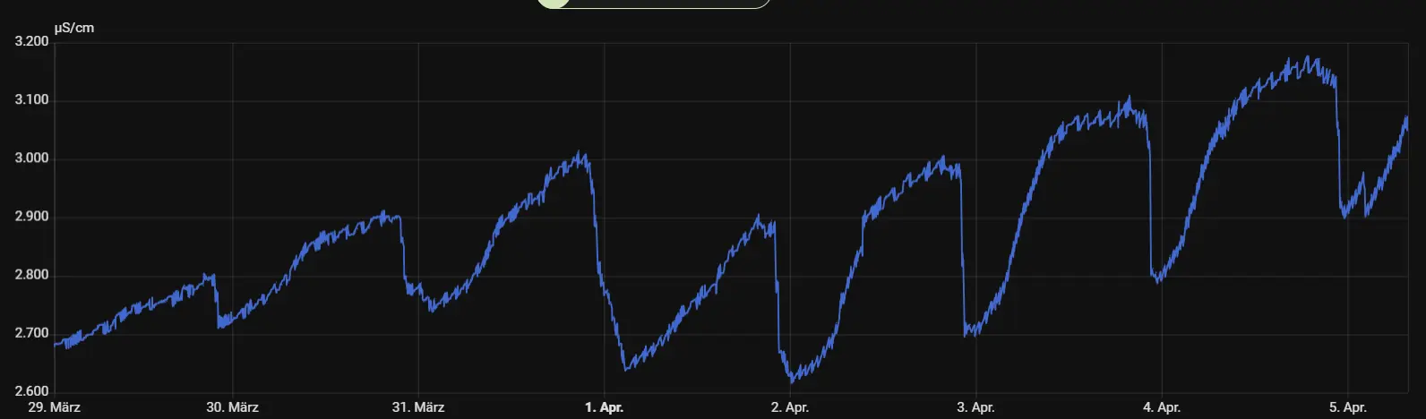 Ein größeres Problem war im letzten Durchgang die Sensorausgabe für den Wassergehalt. Die Werte waren nicht verwertbar. Nach einigen Tests stellte sich heraus, dass die Steinwollsensoren erst ab Grodan NG2.0 funktionieren – mit den klassischen Grodans nicht. Jetzt liefern der Sensor plausible Werte, die sich zum steuern eignen.