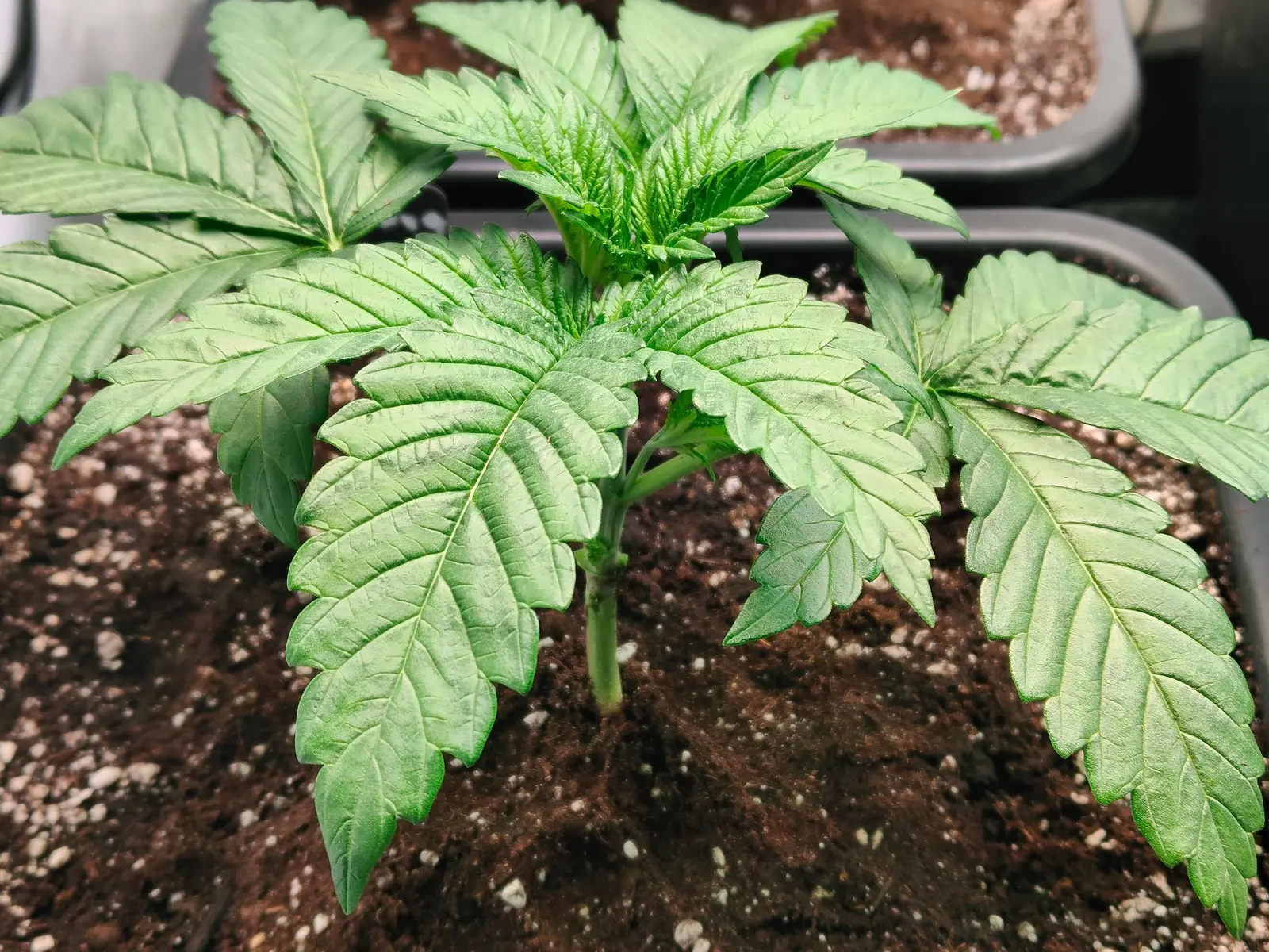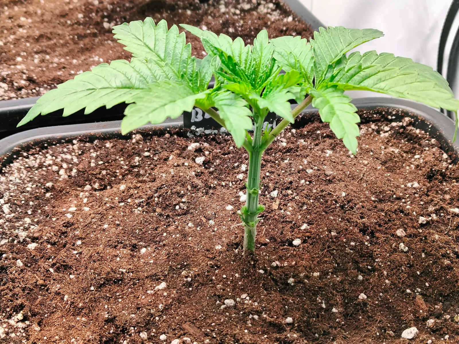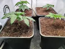 Gesät habe ich am 30.03. und sie stehen nun im Anzuchtzelt in jeweils 9 Litern Plagron Light Mix unter vier Sanlight Flex. Habe also bereits einmal umgetopft. Luftfeuchtigkeit ist derzeit auf ca. 70% eingeregelt und gestern habe ich noch zwei kleine Ventilatoren zugeschaltet.