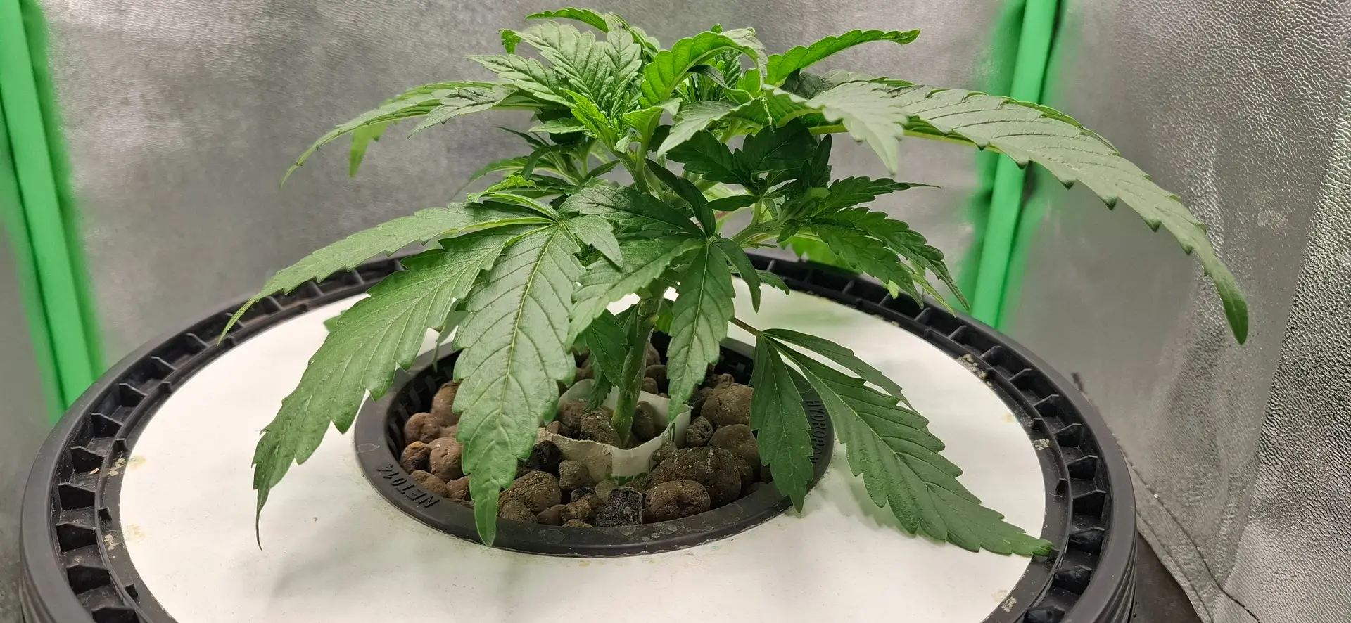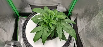 Die Pflanze entwickelt sich gut nach dem Topping. Der Stamm ist schon kräftig. Sie ist nur etwas kurz und buschig. Gebe ich vielleicht schon etwas viel Licht auf die Mütze? Die 100 Watt sind erst seit 3 Tagen voll aufgerissen. Stört mich aber nicht. Ich denke morgen oder übermorgen stelle ich auf 12 Stunden um.