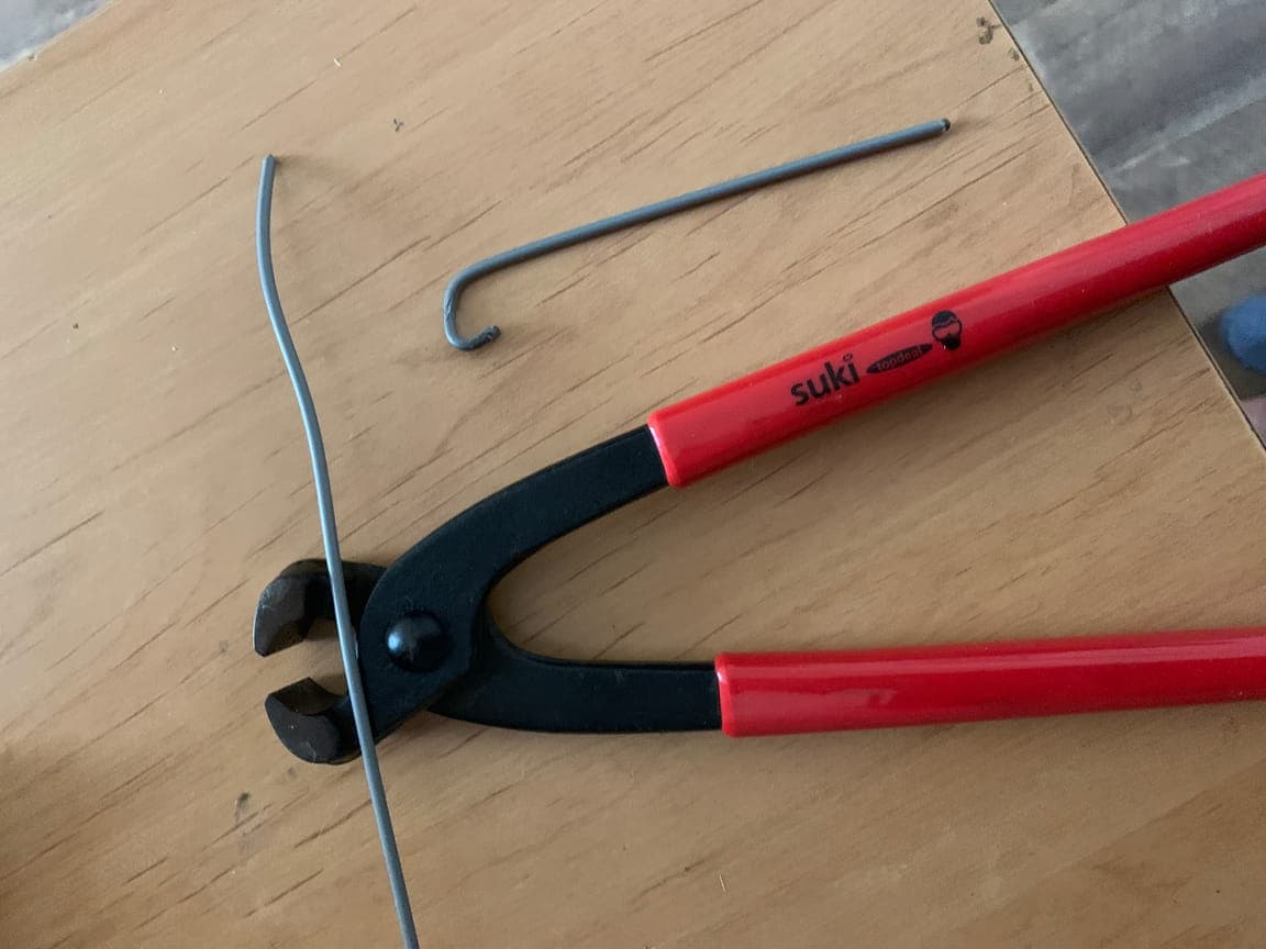 Das ist von Eimer diese Metalhalterung. Die habe ich mit einer Kneifzangen mir zurecht geschnitten und verbogen