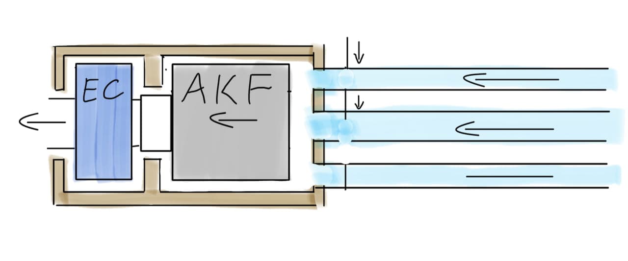 kalte Zuluft, rücklauf warme Luft und abfuhr , alles per Lüftung gesteuert.