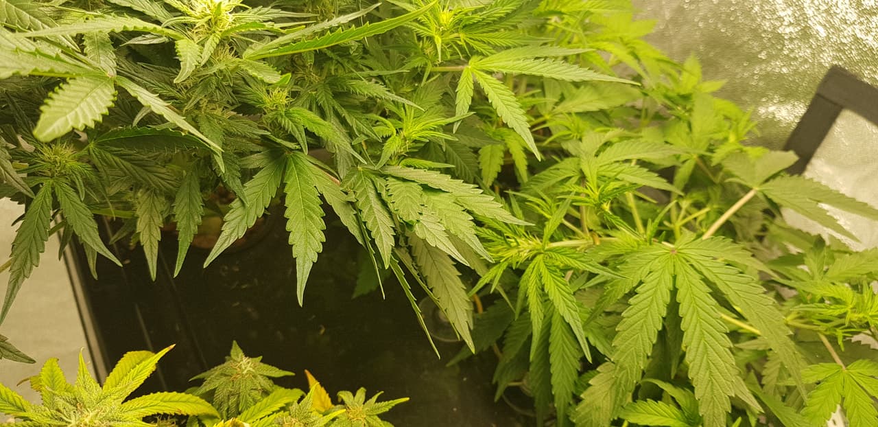 Schaut euch die grossen Pflanzen links und recht an. Sind beide Green Gelato Auto aber sehen anders aus. Die ien hat grosse Blätter währen die andere kleinblätterig ist. Auch lustig ![]()
