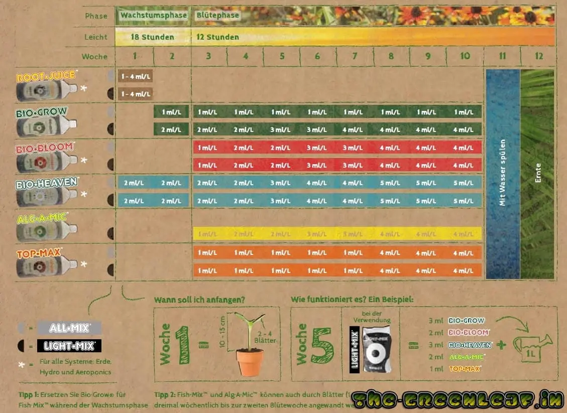 Hab mir das biobizz bloom bestellt,grad gekommen und was seh ich?..ich seh nüschtz!!..keine anleitung zur dosierung-garnix!..also die frage: wie dosiere ich das zeug?