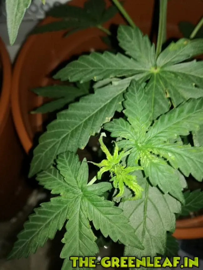 Meint Ihr ich muss mehr gießen?Und jetzt die andere Pflanze, alles dasselbe nur andere Sorte (Snow Ryder) und noch in Veggie. Die hat in der Mitte ganz oben auch blätter die rauskommen, sieht aber auch verkrüppelt aus wie 100 blätter die sich alle aufeinmal durchdrücken wollen, das ist jetzt seit ca 4-5 Tagen so.