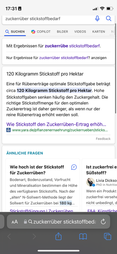 Am Ende wird es das einfachste sein, den Stickstoffaufwand von Zuckerrüben und Zuckerrohr zu vergleichen, und das vielleicht auch für P zu machen, weil das sind beides keine Stickstoffsammler. Die können nur in Eiweiß umsetzen, was die vorher in Dünger bekommen haben.
