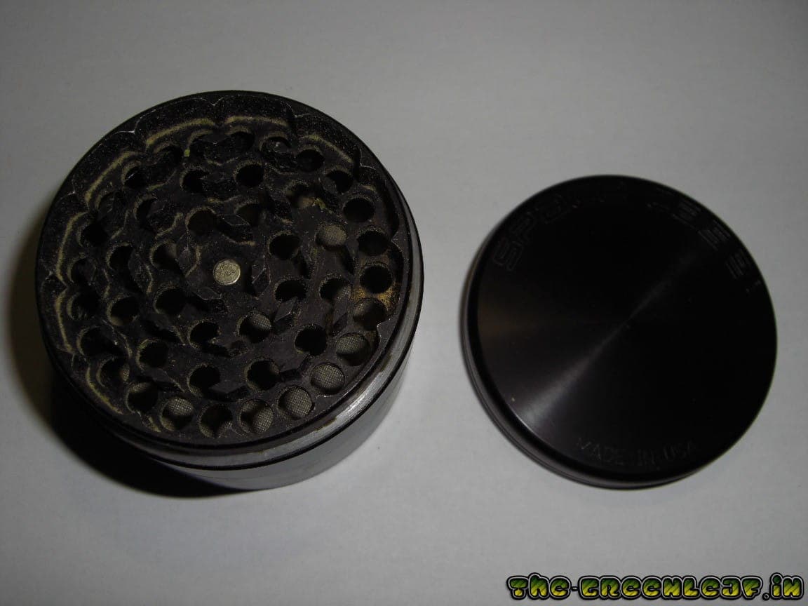 Dazu gibts ein Aufbewahrungssäcklein. Zudem ist der Grinder rundum gerippt wodurch er gut in der Hand liegt & weniger anfällig auf Kratzer ist. Auch sind dadurch keine Fingerabdrücke zu sehen was gleich noch ne optische Aufwertung ist. Der Deckel aleine ist nur minimal dünner als mein alter Grinder wodurch man ihn gut festhalten kann um Kraft zum drehen auszuüben, die jedoch wegen den angeschliffenen Zähnen kaum benötigt wird. (Beim alten hab ich da nur wenige Millimeter zum festhalten, was vorallem bei stark gepresstem Gras mühsam ist.) Ausserdem wird der Deckel mit einem Magneten auf dem Grinder gehalten welcher es sogar erlaubt nur den Deckel zu halten ohne das der untere Teil runterfällt.