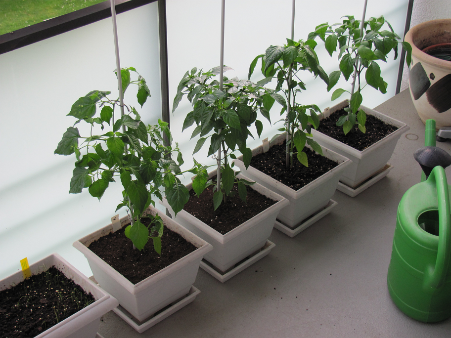 Haben sich prächtig entwickelt und drum bekamen sie eine Stüze und stehen jetzt auf meinem Balkon.