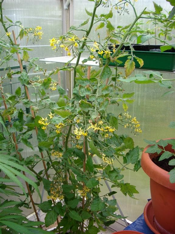hier mal wieder mal die tomaten. die höhe der pflanzen ist jetzt 70cm und die seitentriebe(blätter) wurden auf ca. 5cm gestutzt damit mehr kraft in die blüten geht. das habe ich als tip im tomatenforum gelesen. flash_1