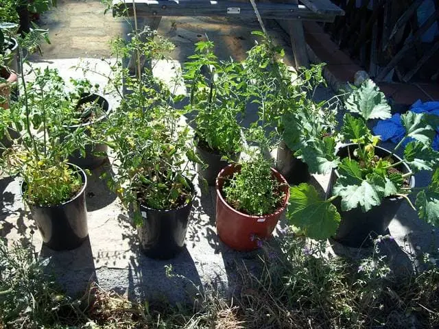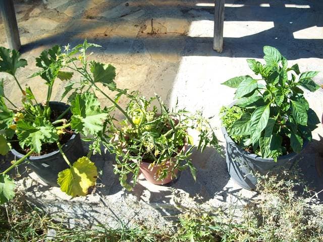 Bild 7: - 3 Töpfe, 3 Pflanzen... Zuchini, Tomate und Paprika,