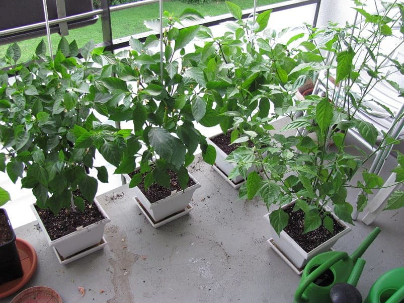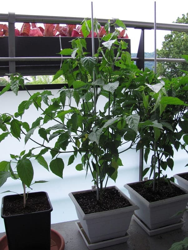 die ersten tomaten sind zu sehen und die chilli hat ein großen pott bekommen.
