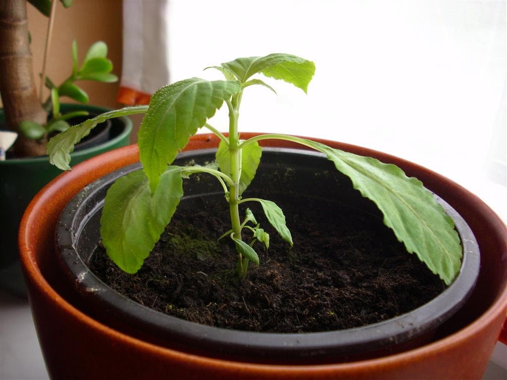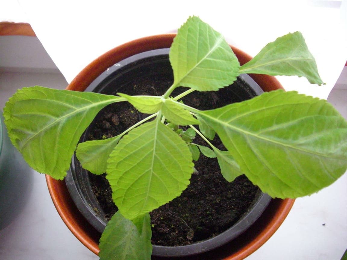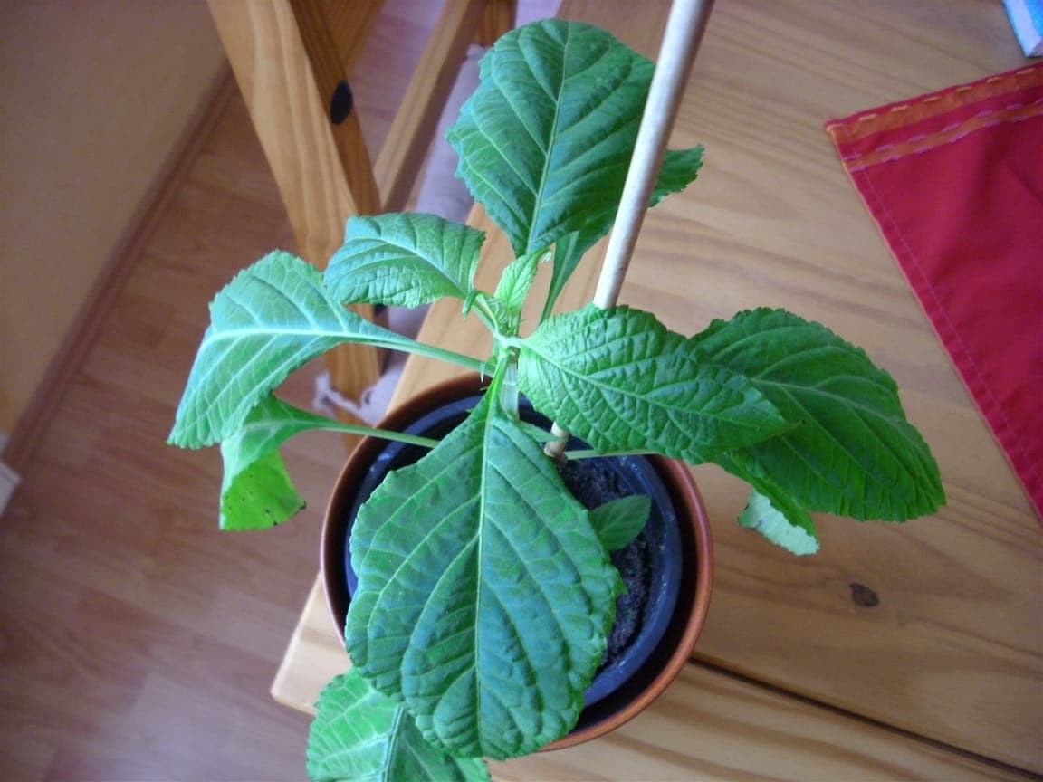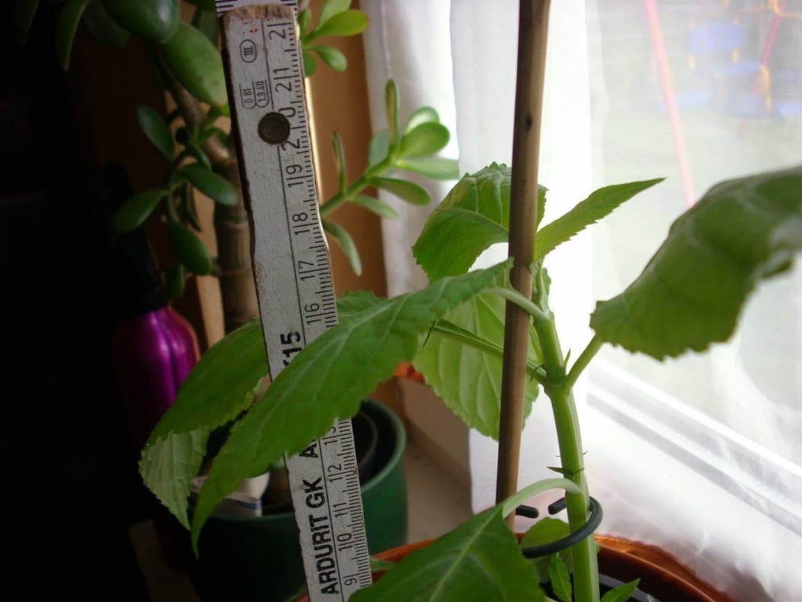 Im Winter stelle ich sie mit ein paar anderen Tropenflanzen in ein altes Aquarium, dessen Seiten ich mit SW-Folie abgeklebt habe. Ein paar PC Ventis als Belüftung, Stecklingsarmatur drauf. Die 100 W sorgen für ein geniales Wachstum, die 200 W sind direkt darüber zu stark.