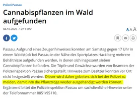 dann soll er sich aber schnell bei der Polizei melden, wegen der Pflanztröge, nicht das die noch weggeschmissen werden, die kann ma nächsten Grow wieder brauchen