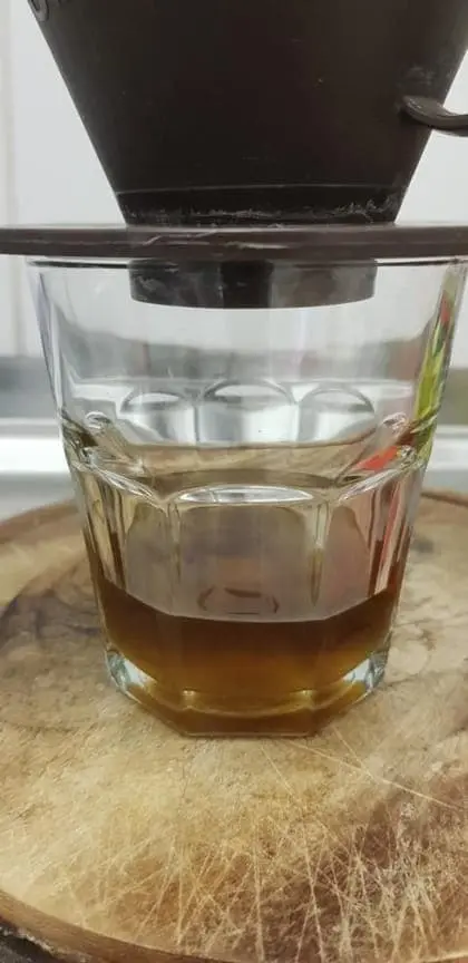 Da mir aber ( auch wie immer ;) ) die Viskosität vom VG irgendwie zu zäh erscheint um alles gut ab zu seihen, habe ich mich heute dazu entschlossen noch 10% (10 ml) Weingeist ( 96%iger) mit unter zu mischen. Dieser Anteil Alkohol , so hoffe ich es zumindest, soll das alles "etwas" beschleunigen, aber auch nicht zu viel ungewollte Bestandteile ,wie Chlorophyll z.Bsp. usw., mit Auswaschen.