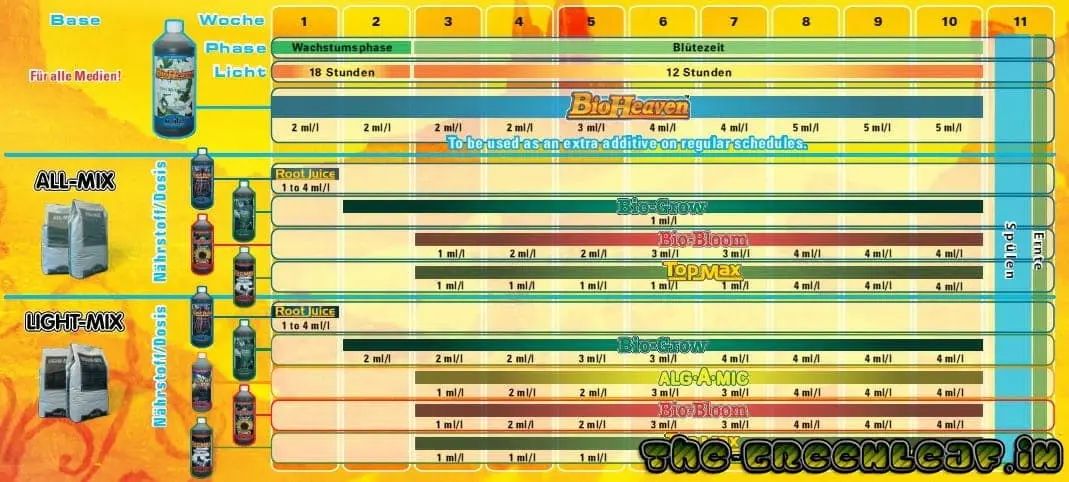 Die samlinge kommen in lightmix bis ich sie umtopfe.. dann misch ich erstmal lightmix und all mix 50/50.. und halte mich ans dungeshema. Da ich die gemisht habe nehme ich auch die angegebene halfte .. ausser bioheaven z b.