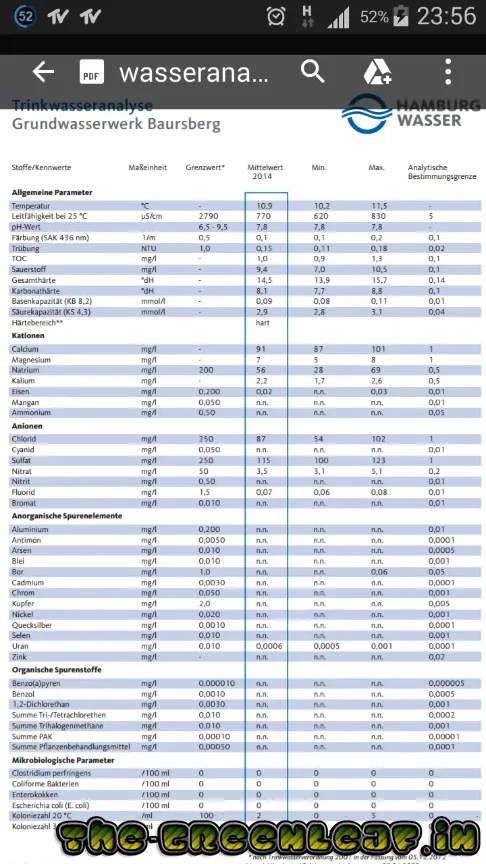 Die Wasser Werte sagen mir nicht viel. Könnt ihr was dazu sagen? Sind die Werte ok wenn man das LW 24std stehen lässt vor jedem Giessen?