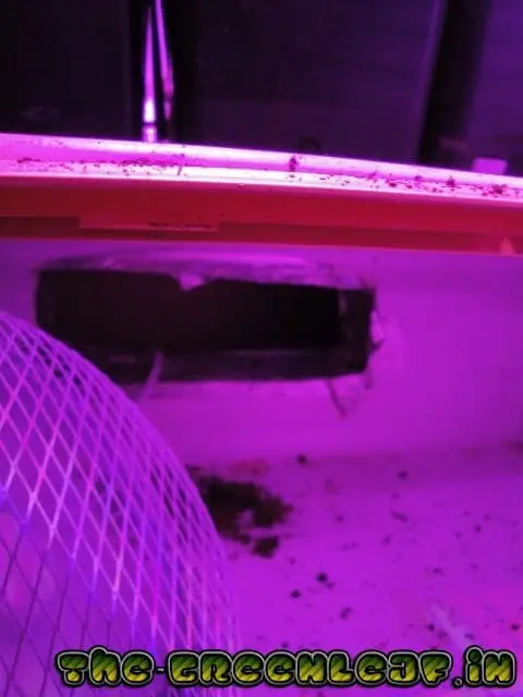 Zuluft mit Lichtfang in meiner Male-Box/=ex Kühl-Gefrierkombi mit Billig Ufo-LED Pannel (=60*3W,bei 95W Leistungsaufnahme/=gute 90W LED+ Rest Lüfter)
