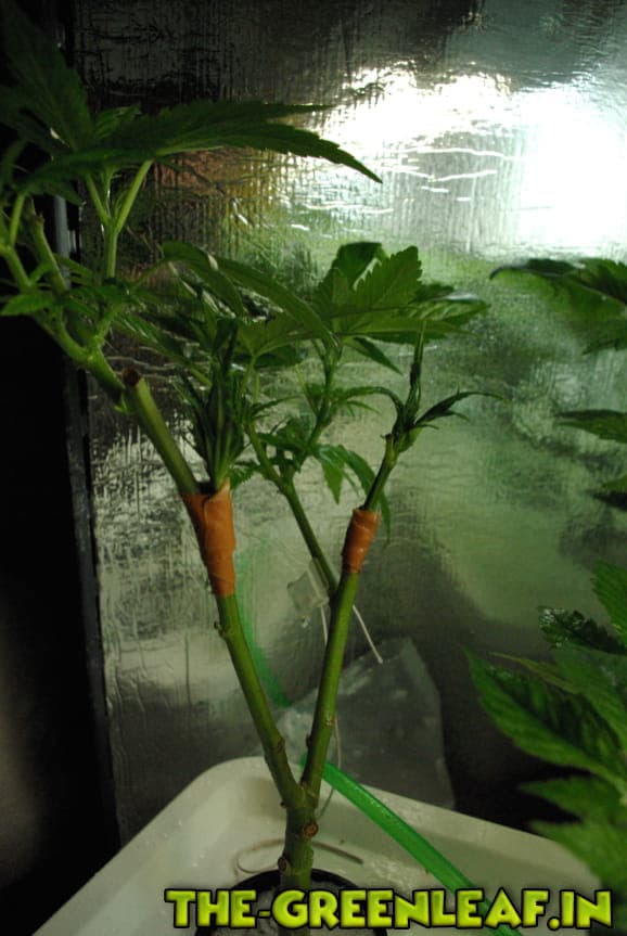 Inspiriert von den Multistrainmuttis, hab ich mal eine Sensi Star und eine Durga Mata auf eine Aurora- Unterlage gepfropft! Bin gespannt affe01 ob es anwächst?