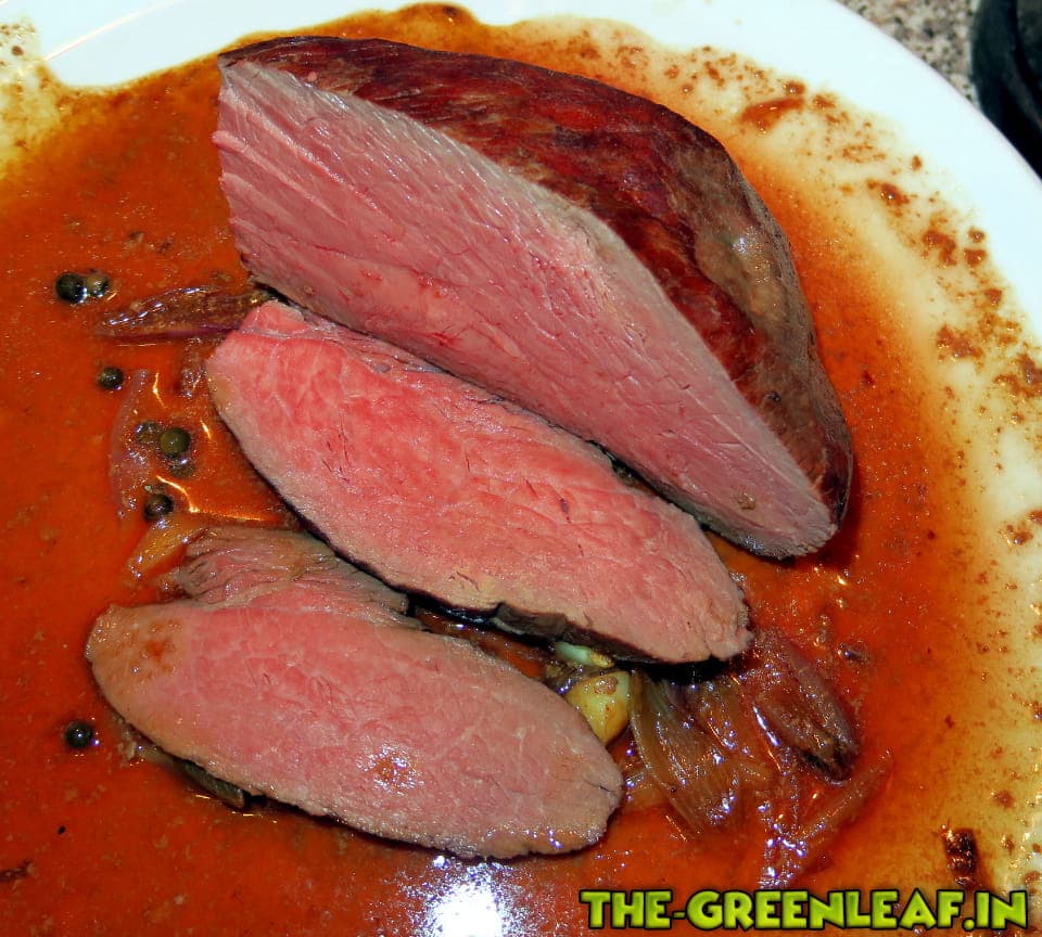 Später wird das gute Stück natürlich noch ringsherum, kräftig angebraten.